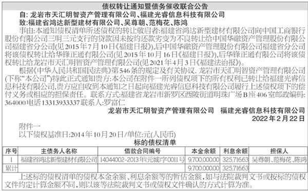 根據《中共建寧縣委建寧縣人民政府關于印發<建寧縣縣屬國有企業整合重組方案>的通知》(建委[2021]133號)、《建寧縣發展和改革局 關于局下屬全民所有制企業改革的方案》(建發改綜[2022]1號)的文件精神和要求,福建省建寧縣糧食購銷有限公司擬吸收合并建寧縣糧油飼料工業有限公司、建寧縣中心糧庫、建寧縣下坊糧油加工廠、建寧縣糧油經營有限公司、建寧縣城關糧油供應站,福建省建寧縣糧食購銷有限公司存續,建寧縣糧油飼料工業有限公司、建寧縣中心糧庫、建寧縣下坊糧油加工廠、建寧縣糧油經營有限公司、建寧縣城關糧油供應站解散,根據《公司法》和相關法律法規的規定,合并各方的債權債務均由合并后存續的福建省建寧縣糧食購銷有限公司承繼,請相關債權人自接到通知書之日起三十日內,未接到通知書的自本次公告之日起四十五日內,可以要求公司清償債務或者提供相應的擔保。 特此公告! 聯系電話:13859155410 聯系人:李萍 地址:建寧縣濉溪鎮建蓮北路南崗堡5-2號 福建省建寧縣糧食購銷有限公司 建寧縣糧油飼料工業有限公司 建寧縣中心糧庫 建寧縣下坊糧油加工廠 建寧縣糧油經營有限公司 建寧縣城關糧油供應站 2022年2月22日 遺失聲明 萬錦建設集團有限公司漳州分公司不慎遺失公章一枚,印章編號:3506038013900,現聲明作廢。 萬錦建設集團有限公司漳州分公司 2022年2月22日 遺失聲明 漳平市五谷漁粉小吃店不慎遺失漳平市市場監督管理局2019年10月30日核發的食品經營許可證副本,許可證編號:JY23508810003692,現聲明該食品經營許可證副本作廢。 漳平市五谷漁粉小吃店 2022年2月22日 遺失聲明 漳州市龍文區名屋竹木制品經營部不慎遺失公章一枚,現聲明作廢。 漳州市龍文區名屋竹木制品經營部 2022年2月22日 減資公告 根據2022年2月21日股東會決議,福建省康貝睿斯貿易有限公司擬減少注冊資本,由2600萬元人民幣減少為50萬元人民幣,債權人自接到公司通知書之日起三十日內,未接到通知書的自本公告之日起四十五日內,有權要求公司清償債務或者提供相應的擔保。 特此公告! 聯系電話:13960449196 聯系人:胡斌 地址:福建省泉州市鯉城區鯉中街道升平社區龍頭山10號4幢D04室 福建省康貝睿斯貿易有限公司 2022年2月22日 陳沂聰: 本院受理原告中信銀行股份有限公司信用卡中心漳州分中心與被告陳沂聰信用卡糾紛一案。現依法向你(單位)公告送達本院起訴狀副本、應訴通知書、舉證通知書、廉政監督卡、開庭傳票及相關證據、當事人權利義務須知、訴訟風險提示書。自公告之日起經過30日即視為送達。提出答辯狀和舉證的期限為公告送達期滿后次日起15日內。本院定于舉證期限屆滿后的第三日上午8時30分(遇法定節假日順延)在本院第五審判法庭公開開庭審理,逾期將依法缺席裁判。 漳州市薌城區人民法院 2022年2月22日 黃茂申: 本院受理原告中信銀行股份有限公司信用卡中心漳州分中心與被告黃茂申信用卡糾紛一案,現依法向你公告送達起訴狀副本、應訴通知書、舉證通知書、開庭傳票、廉政監督卡,自本公告發出之日起經過30日即視為送達。提出答辯狀的期限和舉證的期限均為公告期滿后的15日,開庭日期定于舉證期滿后第3日上午8時30分(遇節假日順延)在本院第三法庭公開開庭審理,逾期將依法缺席判決。 漳州市薌城區人民法院 2022年2月22日 劉色坤: 本院受理原告中信銀行股份有限公司信用卡中心漳州分中心與被告劉色坤信用卡糾紛一案。現依法向你(單位)公告送達本院起訴狀副本、應訴通知書、舉證通知書、廉政監督卡、開庭傳票及相關證據、當事人權利義務須知、訴訟風險提示書。自公告之日起經過30日即視為送達。提出答辯狀和舉證的期限為公告送達期滿后次日起15日內。本院定于舉證期限屆滿后的第三日上午8時30分(遇法定節假日順延)在本院第五審判法庭公開開庭審理,逾期將依法缺席裁判。 漳州市薌城區人民法院 2022年2月22日 謝炳坤: 本院受理原告中信銀行股份有限公司信用卡中心漳州分中心與被告謝炳坤信用卡糾紛一案。現依法向你(單位)公告送達起訴狀副本、應訴通知書、舉證通知書、廉政監督卡、開庭傳票及相關證據、當事人權利義務須知、訴訟風險提示書。自公告之日起經過30日即視為送達。提出答辯狀和舉證的期限為公告送達期滿后次日起15日內。本院定于舉證期限屆滿后的第三日上午8時30分(遇法定節假日順延)在本院第一審判法庭公開開庭審理,逾期將依法缺席裁判。 漳州市薌城區人民法院 2022年2月22日 卓茶枝: 本院受理原告中信銀行股份有限公司信用卡中心漳州分中心與被告卓茶枝信用卡糾紛一案。現依法向你(單位)公告送達起訴狀副本、應訴通知書、舉證通知書、廉政監督卡、開庭傳票及相關證據、當事人權利義務須知、訴訟風險提示書。自公告之日起經過30日即視為送達。提出答辯狀和舉證的期限為公告送達期滿后次日起15日內。本院定于舉證期限屆滿后的第三日上午8時30分(遇法定節假日順延)在本院第五審判法庭公開開庭審理,逾期將依法缺席裁判。 漳州市薌城區人民法院 2022年2月22日 林育敏: 本院受理原告中信銀行股份有限公司信用卡中心漳州分中心與被告林育敏信用卡糾紛一案。現依法向你(單位)公告送達起訴狀副本、應訴通知書、舉證通知書、廉政監督卡、開庭傳票及相關