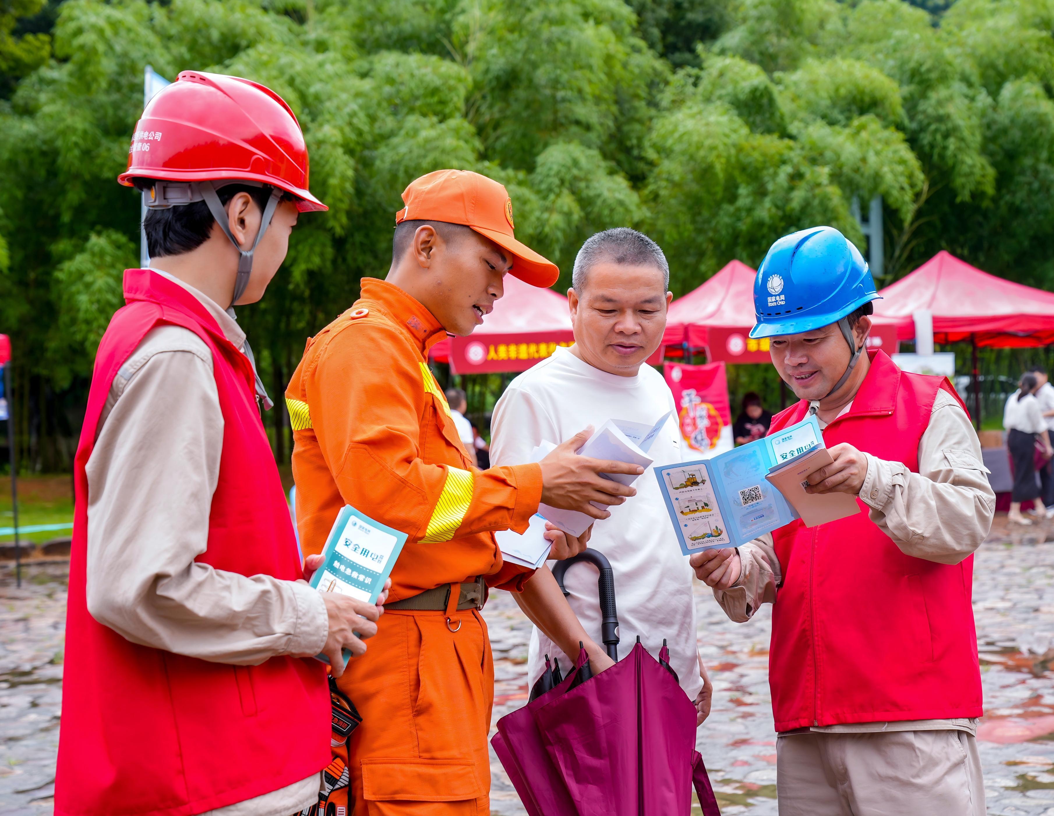 近日,龍巖市消防、電力等部門聯(lián)合走進永定土樓建筑群,開展防火、用電等隱患排查,通過各種形式宣講安全知識。圖為消防員和電力工作人員向過往游客講解安全知識。 |