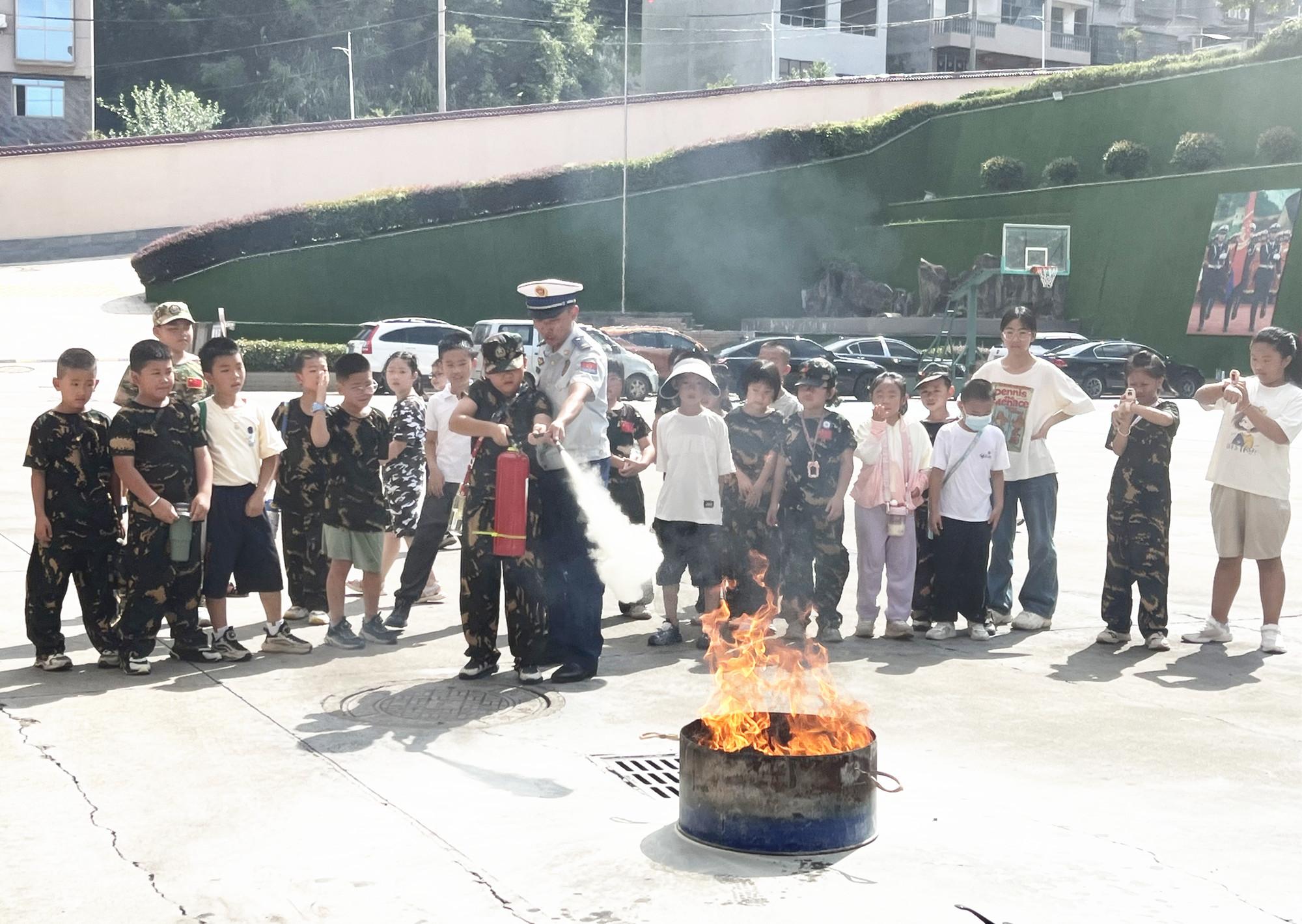 近日,政和縣總工會組織暑期夏令營師生走進(jìn)政和縣源峰莊消防救援站,“零距離”體驗消防工作。圖為消防員指導(dǎo)師生如何油盆滅火。 |