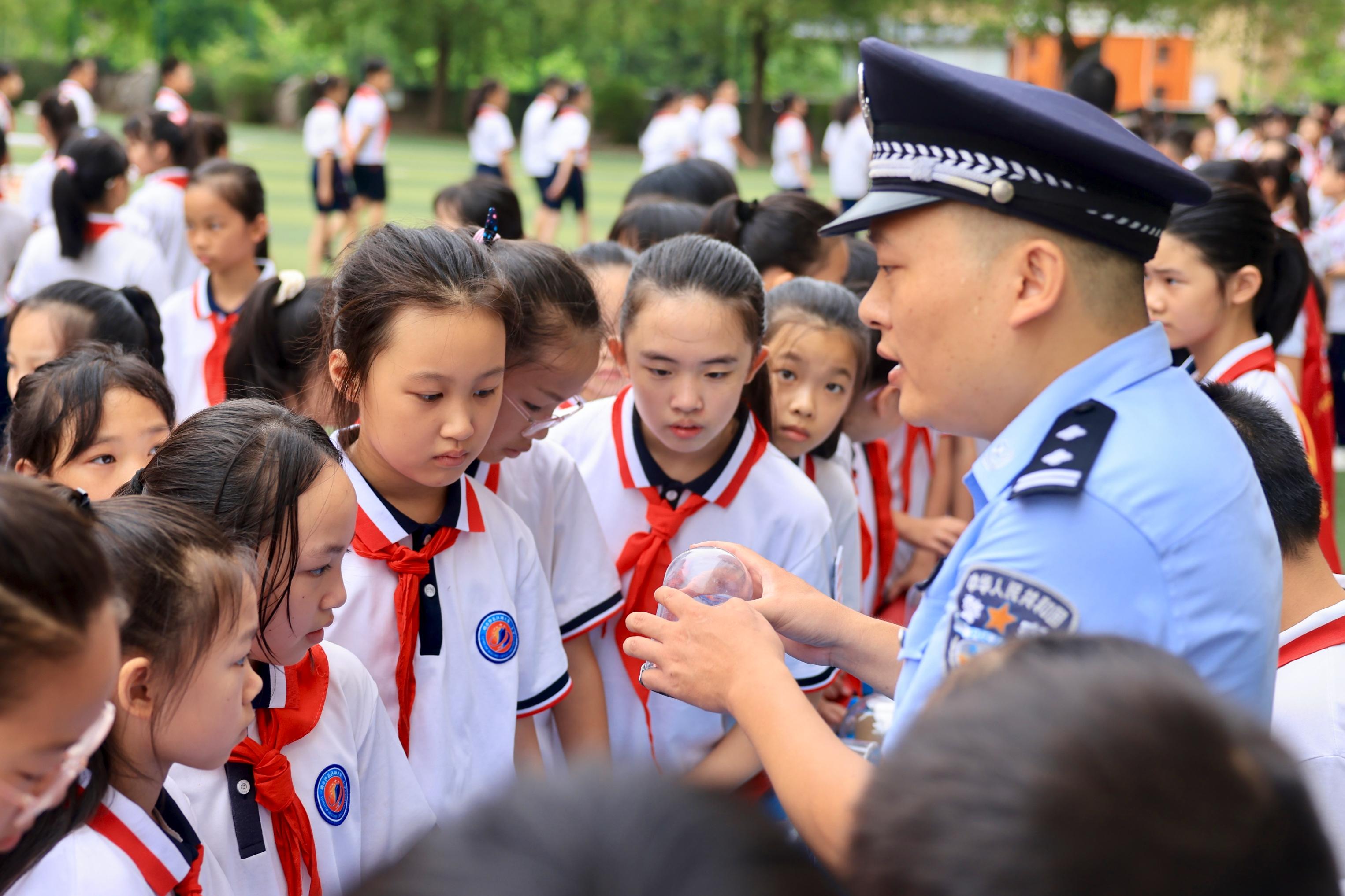 近日,三明市公安局沙縣分局組織民警走進城關第三小學,開展禁毒宣傳活動。圖為民警向同學們講解禁毒知識。 |