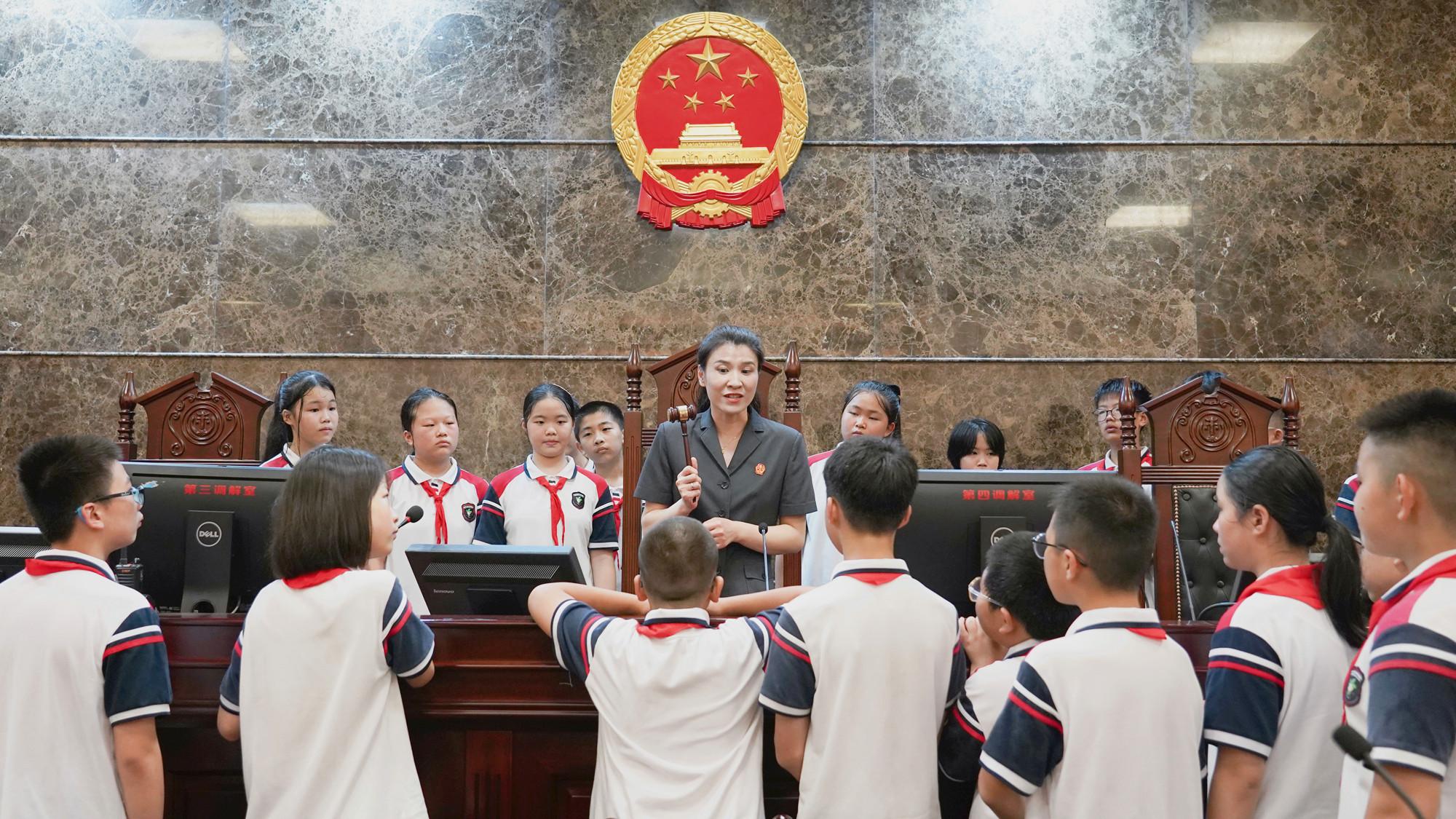 當九月的晨光灑滿校園,粉筆灰勾勒的講臺上,有一群“特殊的老師”格外引人注目——他們沒有固定的教學課時,卻把法治的刻度刻進青春;他們不常出現(xiàn)在作業(yè)本的評語里,卻用專業(yè)和溫柔,為學生成長筑起堅實的“防護盾”。 2014年以來,一批批來自法院、檢察院、公安、司法行政等部門的政法干警,帶著對青少年成長的深切關懷,接過“法治副校長”的聘書。十余載春秋流轉(zhuǎn),他們走進教室講解法律知識,在操場開展安全演練,于心理咨詢室傾聽少年心事,他們用智慧和熱情,將法治的種子播撒在校園的每一個角落,種在學生的心里。 今天是9月10日教師節(jié),在這個致敬師者的日子里,讓我們把目光投向這群“不一般的老師”。 “用真誠和耐心種下法治種子” ——南平中院少年審判庭副庭長朱秀敏用心對待每一節(jié)法治課 □周新 李其傲 “如何讓法條變得生動有趣?”“這個案例會不會更貼近孩子們的日常生活?”在南平市中級人民法院少年審判庭的辦公室內(nèi),副庭長朱秀敏正伏案忙碌。辦公桌上鋪著幾份卷宗和彩色便簽,她時而眉頭微蹙沉思,時而提筆在教案上修改,此刻她并非在撰寫裁判文書,而是為即將到來的“開學第一課”精心打磨法治教案。作為一名法治副校長,每逢開學季,如何備好這堂法治課,總能讓她反復琢磨許久。 2021年9月,彼時剛被聘為法治副校長的朱秀敏,還曾為上好一節(jié)法治課陷入深深的困惑。 第一次站上講臺的那天,朱秀敏身著法官制服,手拿寫滿法條的講稿,盡量把語氣放柔和:“已滿十六周歲的人犯罪,應當負刑事責任……”然而,課堂上的景象卻讓她心涼半截。講臺下的孩子們沒過多久便開始東張西望,有的低頭擺弄鉛筆,有的小聲竊竊私語,甚至有孩子忍不住打起了瞌睡。那一刻,站在講臺上的朱秀敏,清晰地感受到自己與孩子們之間仿佛隔著一道無形的墻,課堂上的溝通與知識傳遞變得格外艱難。 課后,朱秀敏看著手中寫滿法條注釋的講義,一股強烈的挫敗感涌上心頭。她腦海中不斷浮現(xiàn)出涉少案件中迷茫而沉默的眼睛,也想起孩子們圍繞在同為法治副校長的其他法官身邊輕松玩鬧的場景。反復思索后,她終于找到問題的關鍵:“不是孩子不愛法,而是我說得不夠入心。” 正是這次挫敗的經(jīng)歷,讓她下定決心改變普法方式,要把枯燥的卷宗變成生動的故事,把嚴肅的法庭變成有趣的課堂。她根據(jù)不同年齡段孩子的認知特點,量身定制普法形式:給低年級孩子上課,她把法律知識編成朗朗上口的兒歌:“陌生人給糖別伸手,告訴老師和父母……”面對高年級的學生,她就帶著孩子走進法院,穿上法袍,在模擬法庭中敲響法槌,讓孩子們感受法律的莊嚴與溫暖。