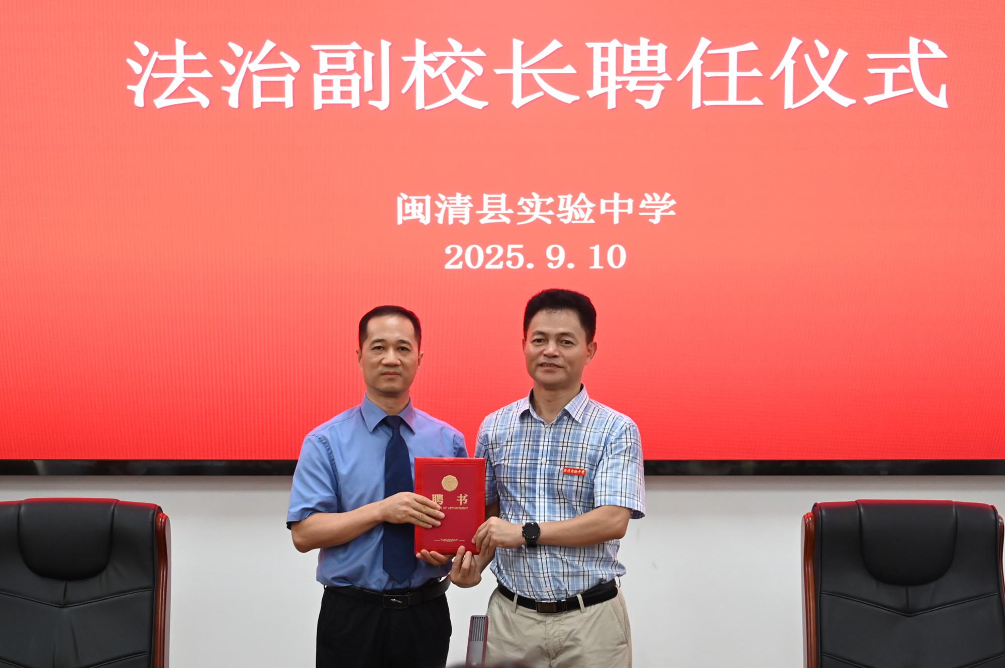 近日,閩清縣檢察院與閩清縣實驗中學聯合舉行法治副校長聘任儀式暨法治進校園活動。圖為閩清縣檢察院黨組書記、檢察長陳紹雨受聘為閩清縣實驗中學法治副校長。 |