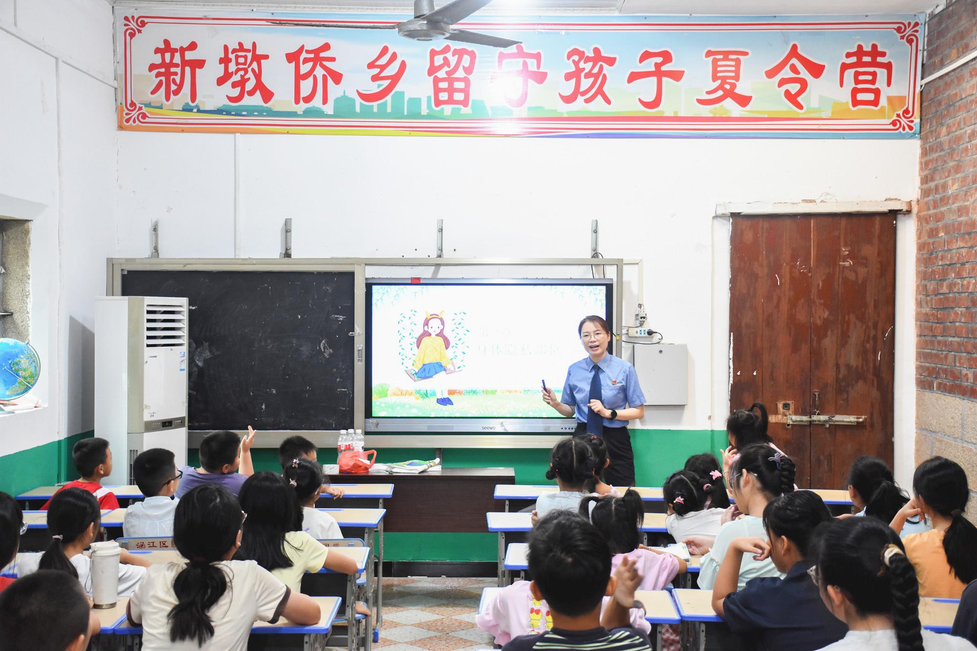 近日,莆田市涵江區(qū)檢察院未檢干警到江口鎮(zhèn)新墩村兒童之家,向孩子們普及未成年人保護(hù)相關(guān)法律知識(shí)。圖為干警給孩子們上法治課。 |