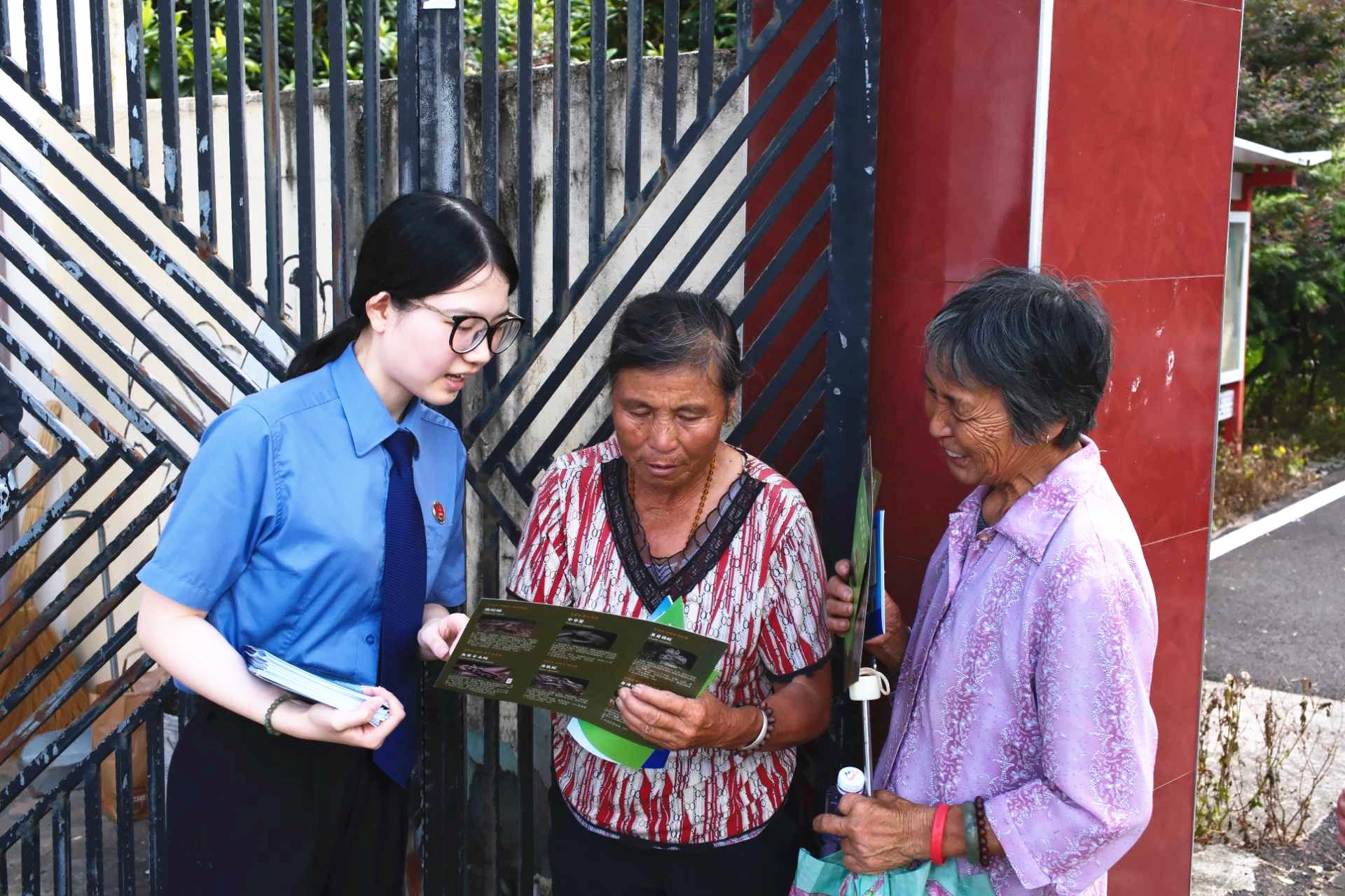 近日,莆田市涵江區檢察院組織干警深入大洋鄉南嶺村開展普法活動。圖為檢察干警向村民發放法治宣傳材料。 |