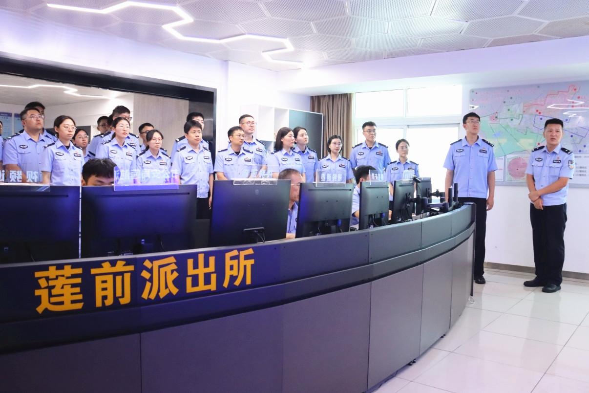 青年民警在廈門市公安局思明分局蓮前派出所了解“兩隊一室”建設情況。(徐天祥 攝) 9月12日,青年民警走進廈門市公安局思明分局蓮前派出所,在綜合指揮室內,屏幕上實時跳動著警情數據、勤務安排,科技賦能警務的現代感撲面而來,“兩隊一室”警務機制運行模式映入眼簾。 “作為廈門主城區轄區面積最大、人員密集場所最多、安保任務最重的派出所,建所28年來,蓮前派出所深化‘兩隊一室’改革,忠誠履行使命擔當,轄區刑事警情連續12年下降,群眾安全感多年位居全市前列。”蓮前派出所綜合指揮室主任黃穎玲介紹道。 隨后,青年民警走進廈門市公安局英模會客廳、出入境管理支隊。在“時代楷模”陳清洲事跡展館前,“亮燈警察”陳清洲從警生涯始終扎根基層、心系群眾的點點滴滴,讓每一位青年民警深受觸動;在出入境管理支隊辦證中心,青年民警近距離體驗“智能簽注區”、“近便利”臺胞服務專區等,更直觀感受廈門公安助力兩岸融合發展的跨前擔當。