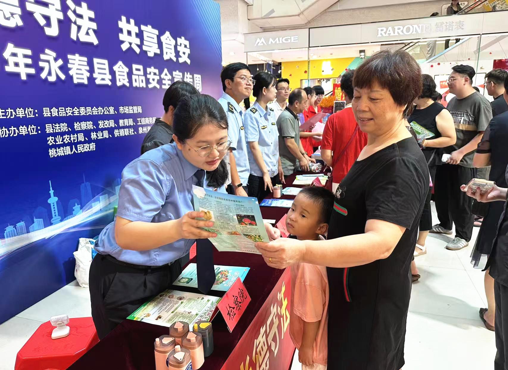 近日,永春縣檢察院聯(lián)合多部門在永春縣時代廣場開展“尚德守法 共享食安”主題宣傳活動。圖為該院工作人員為群眾講解食品安全相關(guān)法律法規(guī)。 |
