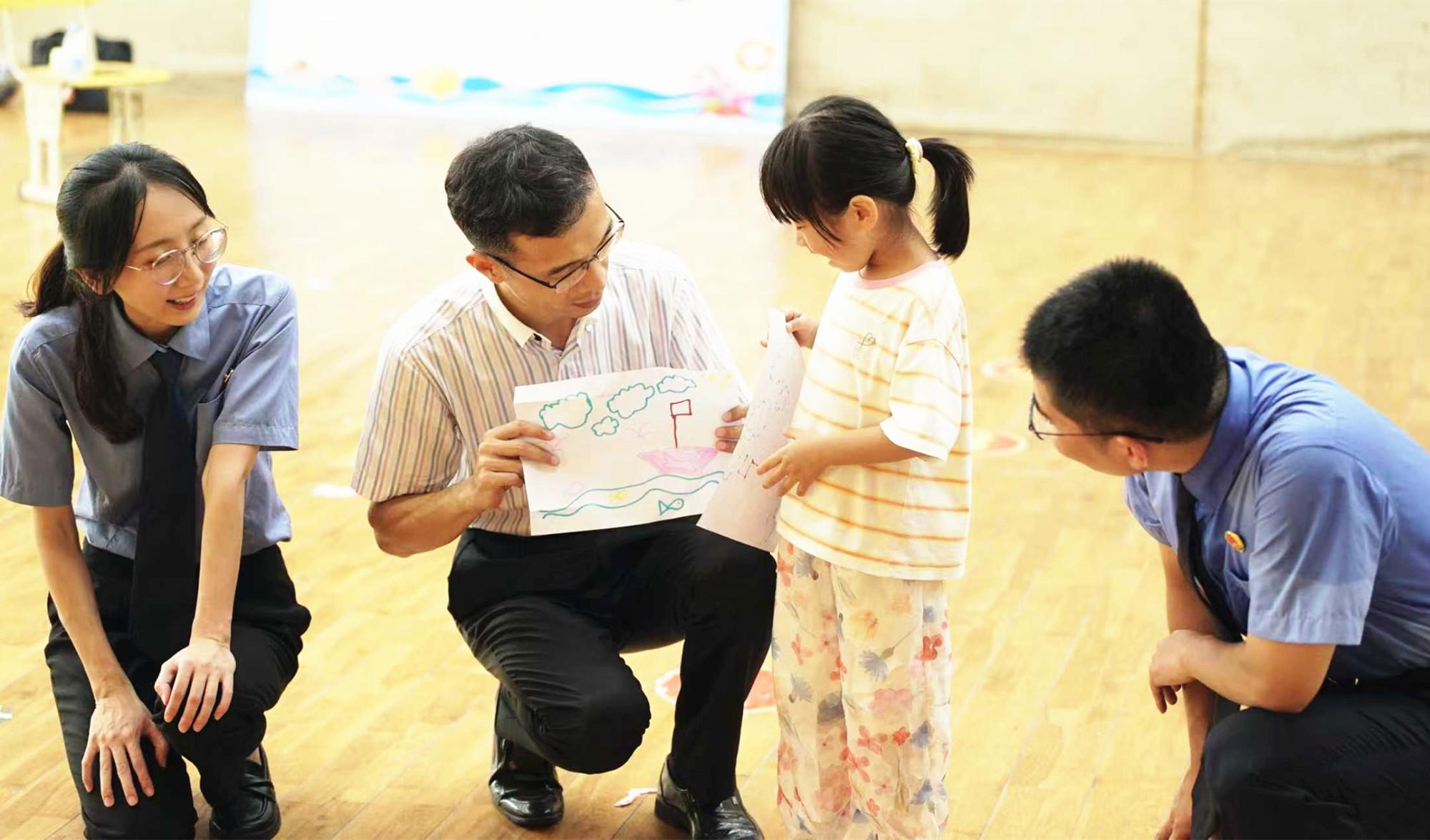 孩子介紹自己的畫作 活動現場,連江縣檢察院聯合大風車青少年社工,精心選取《森林法庭》系列普法動漫,引導孩子結合視頻學習法律知識,熟悉并理解法庭庭審的過程。隨后,在“我心中的司法保護”涂鴉墻上,孩子為畫板上各種象征正義的法治元素上色,檢察干警在互動中為孩子講解未成年人保護法律知識,讓孩子感受到法律就在身邊。 活動中,干警和工青婦、民政、沿海鄉鎮政府走訪慰問9名沿海困難家庭未成年人,了解孩子生活、學習情況,發放慰問金6000元,實現精準慰問救助。同時,邀請社工、省心理援助協會,開展定制法治教育和專題心理課10場次,通過多元化場景模擬游戲,幫助未成年人增強法治意識,并為其提供心理關懷。 據了解,連江縣檢察院聯合職能部門探索成立“小海鳥”保護聯盟,旨在全方位守護海難家庭兒童、留守兒童等沿海困難家庭的未成年人健康成長。 |