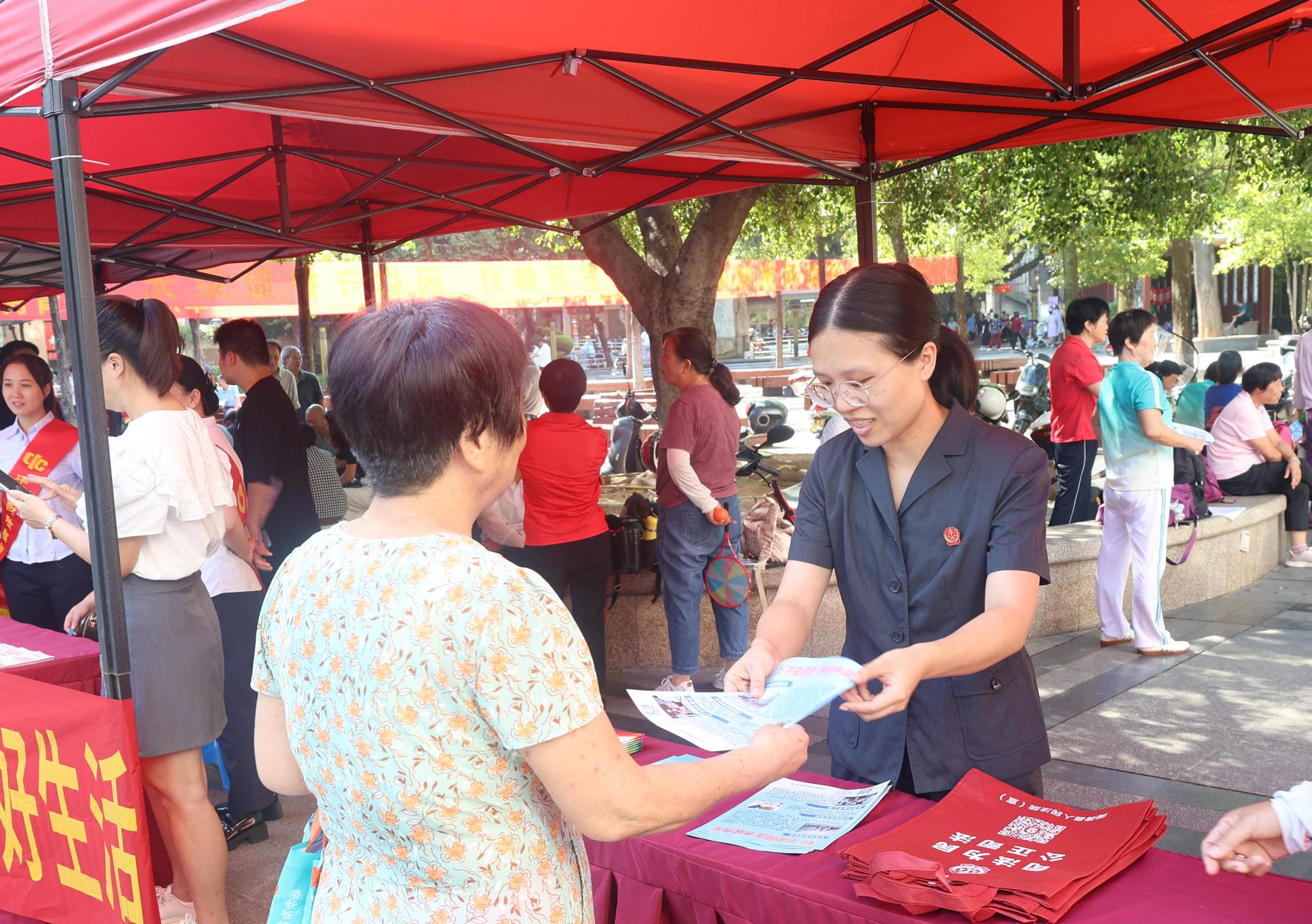 閩清法院近日在乃裳廣場開展“金融教育宣傳周”活動,干警們現場為群眾普及相關法律知識,提升公眾金融風險防范意識。圖為干警向群眾發放宣傳單。 |