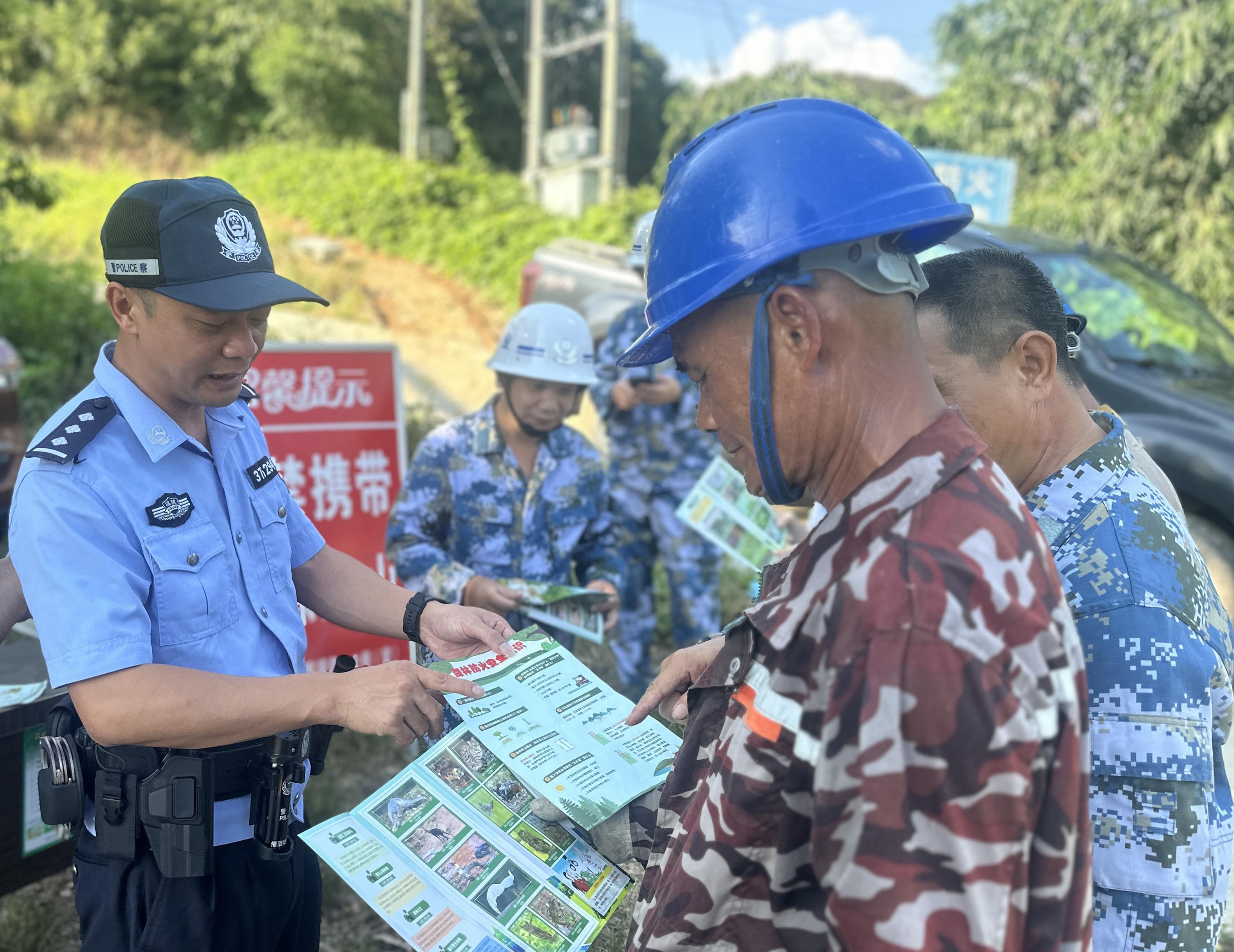 日前,南靖縣公安局龍山派出所與永豐國有林場密切協作,在轄區開展森林防滅火聯合巡查宣防行動。圖為民警向群眾發放宣傳資料。 |
