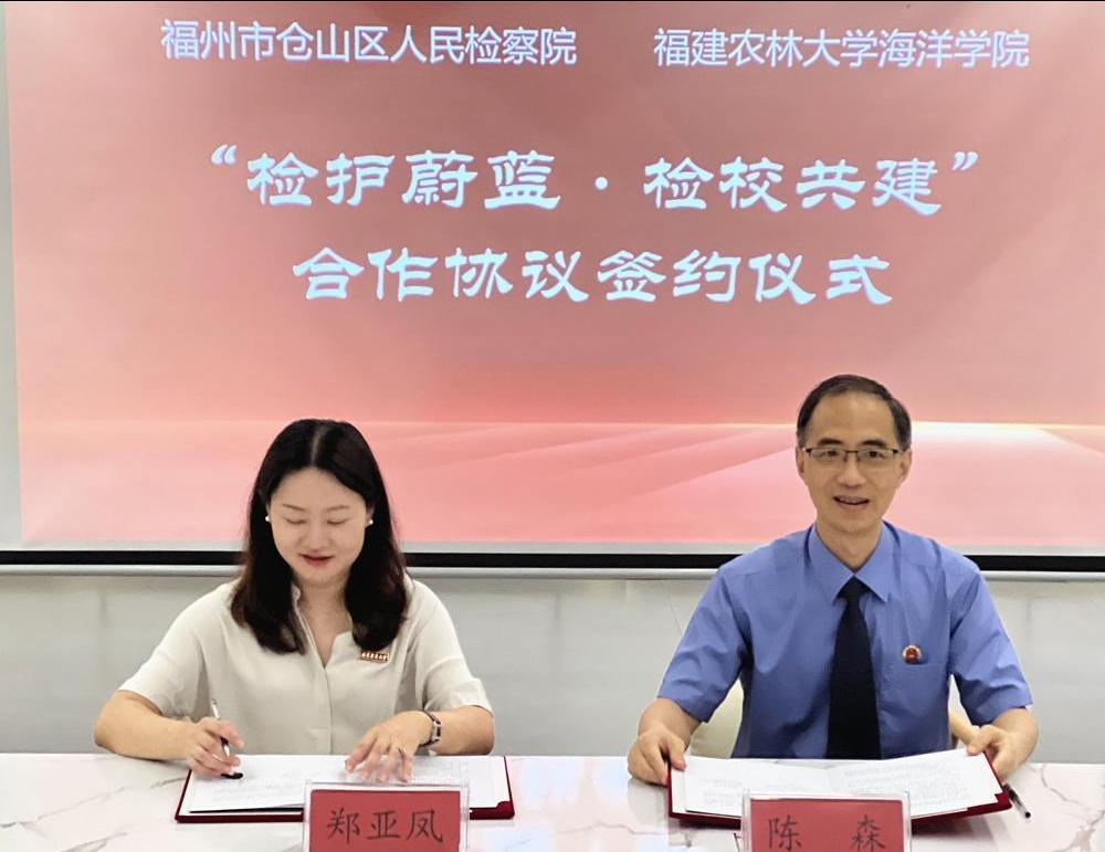 近日,福州市倉山區檢察院與福建農林大學海洋學院舉辦“檢護蔚藍?檢校共建”合作協議簽約儀式。 |