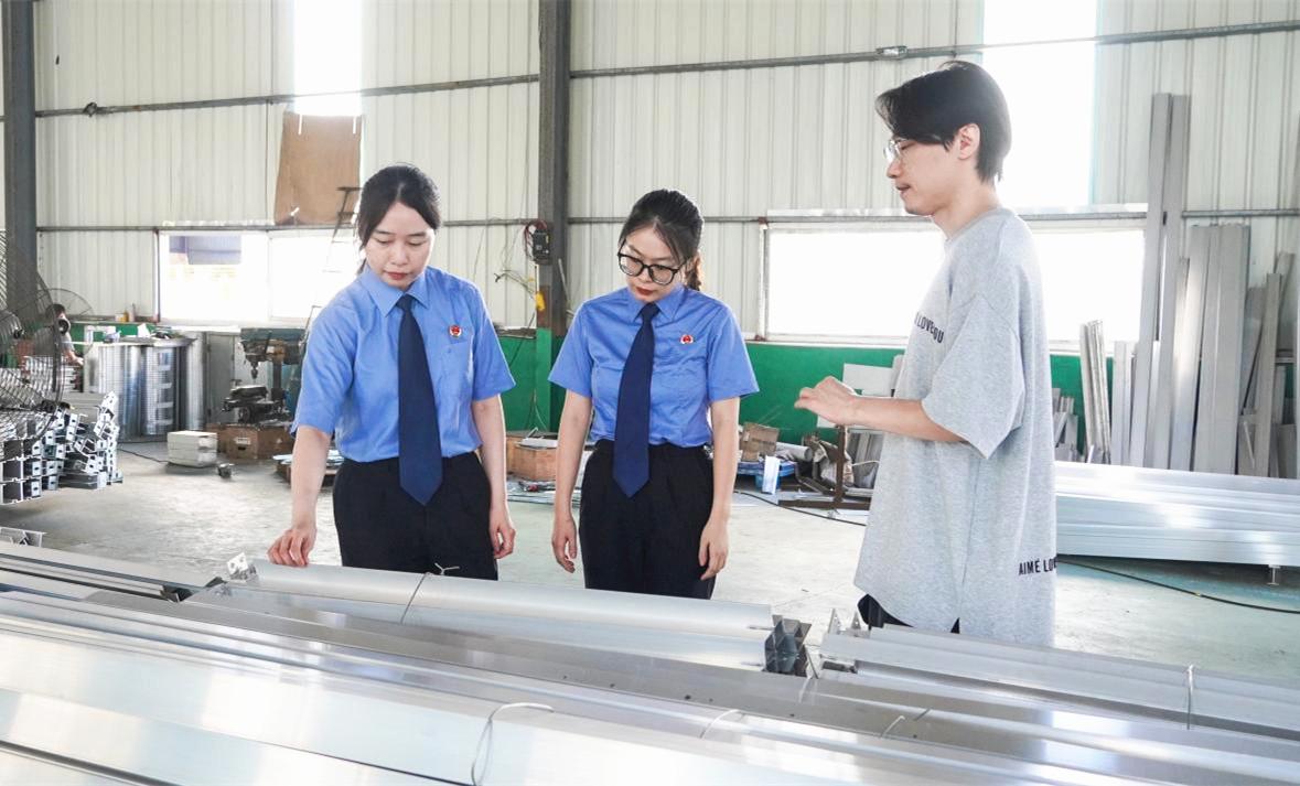 近日,漳平市檢察院檢察干警走進轄區企業,開展網絡安全進企業宣傳活動,向企業員工發放宣傳手冊,普及網絡安全法、個人信息保護、預防電信網絡詐騙等法律知識。圖為檢察干警走進車間實地了解企業生產經營情況。 |