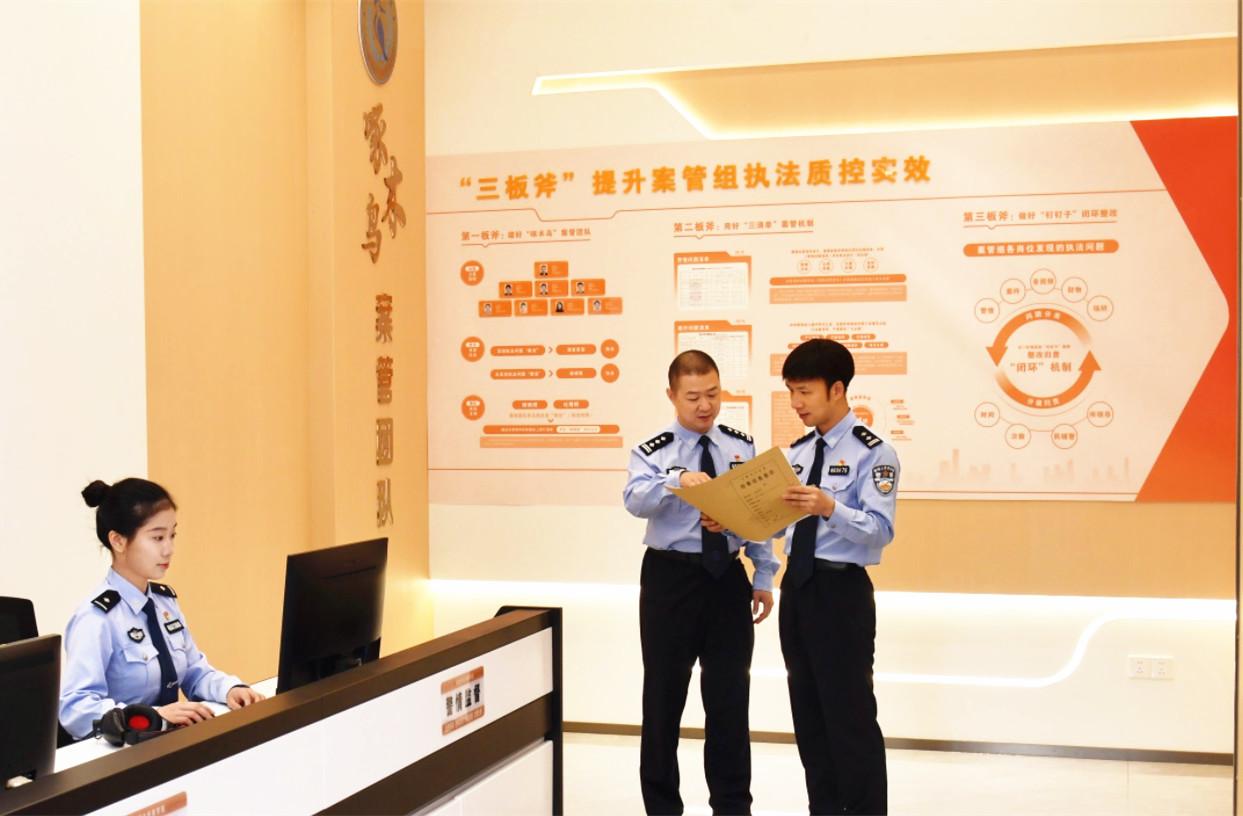 石獅市公安局鳳里派出所“啄木鳥”案管組成員在分析案件卷宗。 (林凱 攝) 近日,石獅市公安局鳳里派出所“啄木鳥”案管團隊成員圍坐在一起,對一起盜竊案信息展開討論,指出“昨天下午這起盜竊案,案件材料都已掃描入網,證據材料方面沒有問題,但現場執法音視頻尚未關聯,涉案財物也還沒入庫”,隨后又迅速打開其他案件的卷宗,仔細核對警情、案件、物品、場所等執法關鍵要素。 走進鳳里派出所案管組,“三板斧”三個大字,在案管室的墻上格外醒目。“‘三板斧’分別指‘啄木鳥’案管團隊、‘三清單’案管機制、‘釘釘子’閉環整改。”鳳里派出所副所長黃華雄介紹道,“啄木鳥”案管團隊成員像一只只認真負責的啄木鳥,扎實、精準、深刻地發現執法問題;“三清單”案管機制化繁為簡,根據執法規范內容編制警情、案件、其他要素管控三張清單,實現執法監督全流程全要素全覆蓋管理;“釘釘子”閉環整改,以一釘到底的精神,實行分類分級問題整改歸責“閉環”機制,推動問題整改到位。 “啄木鳥”案管團隊嚴格對照“三清單”,將案件審核、警情監督等工作細化分解,全方位把控執法流程,確保每個環節都責任到人。團隊還別出心裁地設立“晾曬榜”,每日公布執法典型案例,促進案管組與辦案民警相互交流、共同進步。 石獅市公安局是全國唯一連續8次獲評“全國執法示范單位”的縣級公安機關。作為該局法治建設的試點單位,鳳里派出所近5年行政復議、訴訟案件“零糾錯”“零敗訴”。 科技賦能案件辦理 完善的動態監督體系讓執法過程更加規范透明,而科技的賦能,則為福建公安機關法治公安建設注入了新活力,讓案件辦理跑出“加速度”。 7月15日,廈門市公安局湖里分局湖里派出所民警洪祺煌在對轄區某物流有限公司進行檢查時,發現該公司未制定單位內部消防安全管理制度。該案件符合行政快辦條件,洪祺煌使用“1小時快辦”App辦理案件,僅用時30余分鐘即處理完畢。