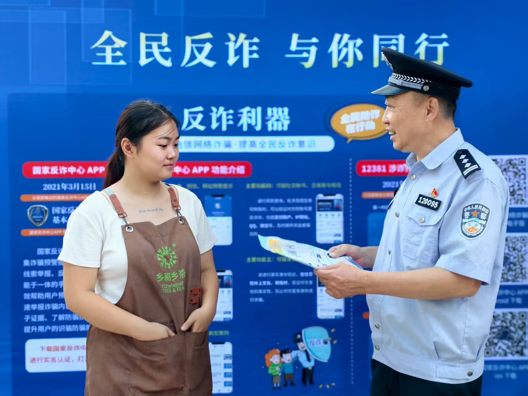 近日,福州市公安局蒼霞派出所在上下杭景區(qū)開展反詐宣傳活動,筑牢群眾財產(chǎn)安全防線。圖為民警向現(xiàn)場群眾講解反詐知識。 (記者 王思琦 通訊員 張姚佳 攝) |
