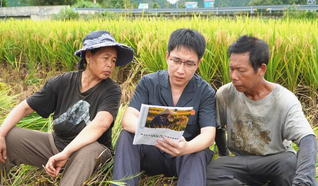 9月23日,邵武法院的法官們主動走出法庭,深入田間地頭、農家院落,開展以“慶豐收·促和諧·法護航”為主題的系列普法宣傳活動,將法律知識化作一份特殊的“豐收禮”,為喜慶的豐收季增添一抹堅實的法治底色。圖為法官在田間地頭向村民講解涉農法律常識。 |