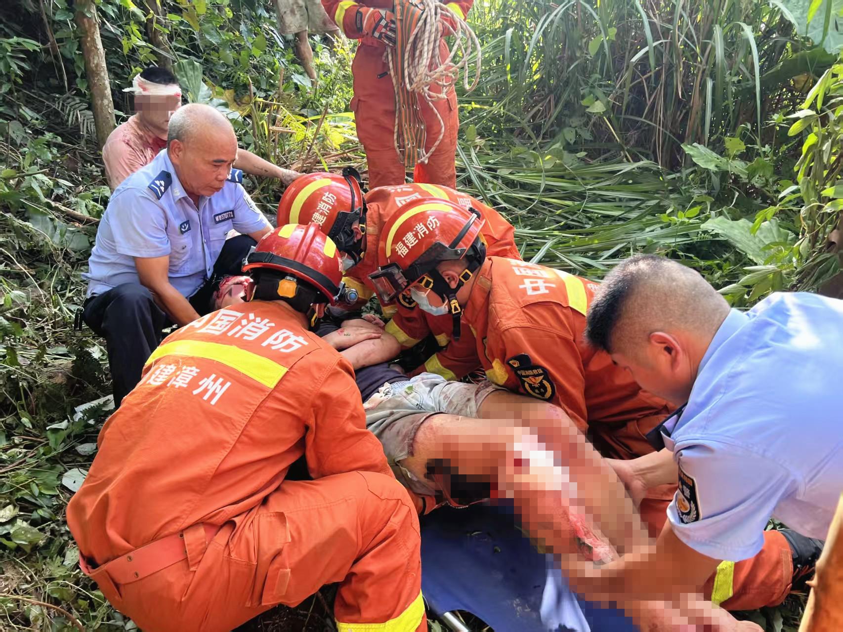 本報訊 9月17日,漳州市長泰區枋洋鎮青陽村附近發生一起驚險事故:兩人在騎電動車返程途中不慎墜入深谷被困。接到報警后,漳州市消防救援支隊迅速調派長泰區消防救援大隊巖溪站1車7人趕赴現場展開救援。 消防救援人員抵達時,事故現場一片狼藉,一輛電動車撞在護欄旁,地面散落著拖鞋,兩名傷者的同伴正在現場焦急守候。兩名傷者跌落于約10米深的山腳下,頭部受傷、身體多處骨折無法行動,但意識仍保持清醒。此前,派出所民警與120急救人員已對傷者進行了初步包扎。