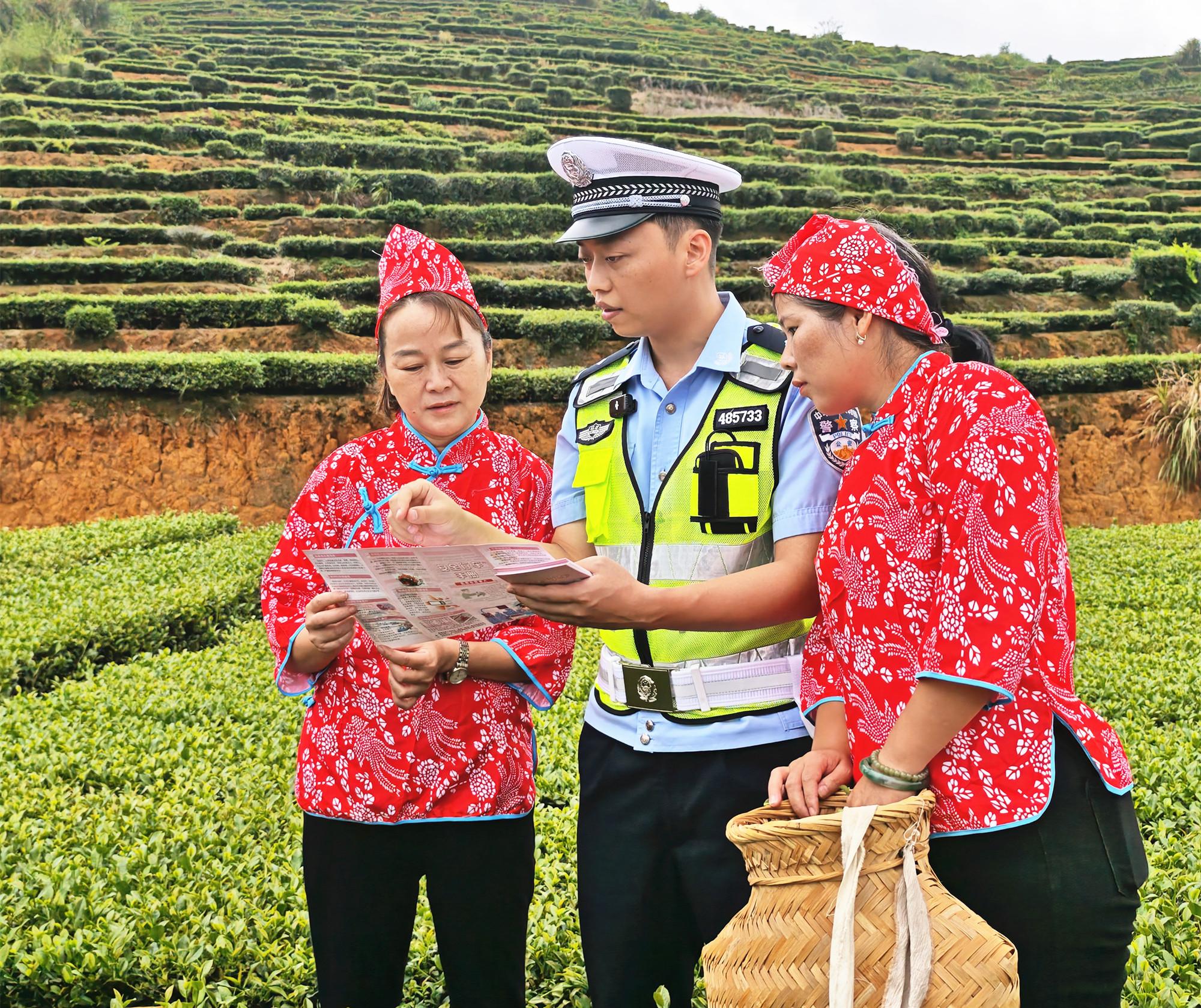9月22日上午,安溪縣公安局交警大隊湖頭中隊民警到鐵觀音主產區之一的感德鎮,和茶農共話交通安全。圖為民警向茶農講解交通安全知識。 |
