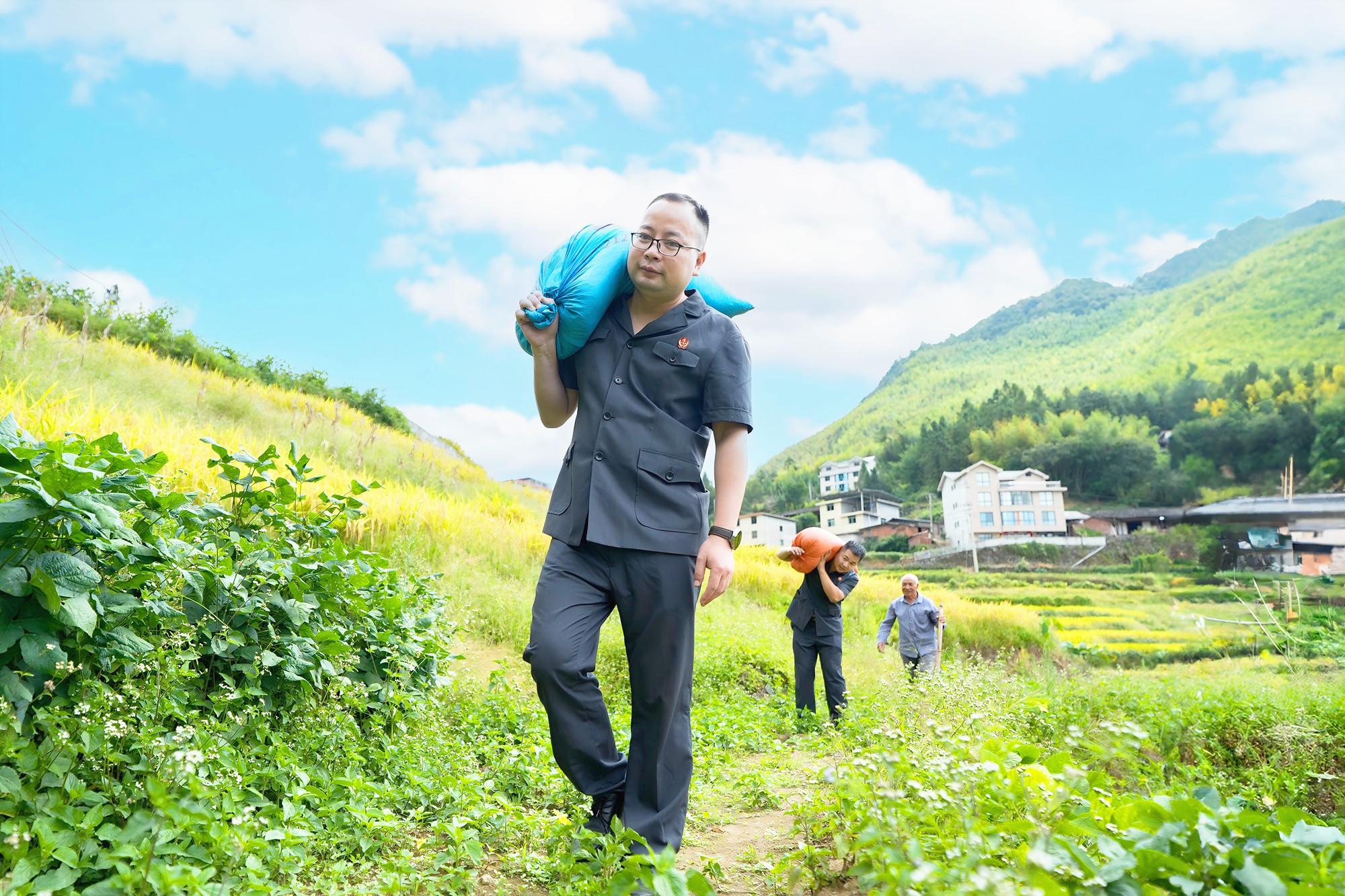 近日,尤溪縣人民法院組織干警深入田間地頭,利用農(nóng)戶勞作休息間隙,向他們普及農(nóng)業(yè)生產(chǎn)、土地流轉(zhuǎn)、涉農(nóng)詐騙等相關(guān)法律知識,耐心解答法律問題。圖為干警幫助農(nóng)民運送新收割的稻谷。 |