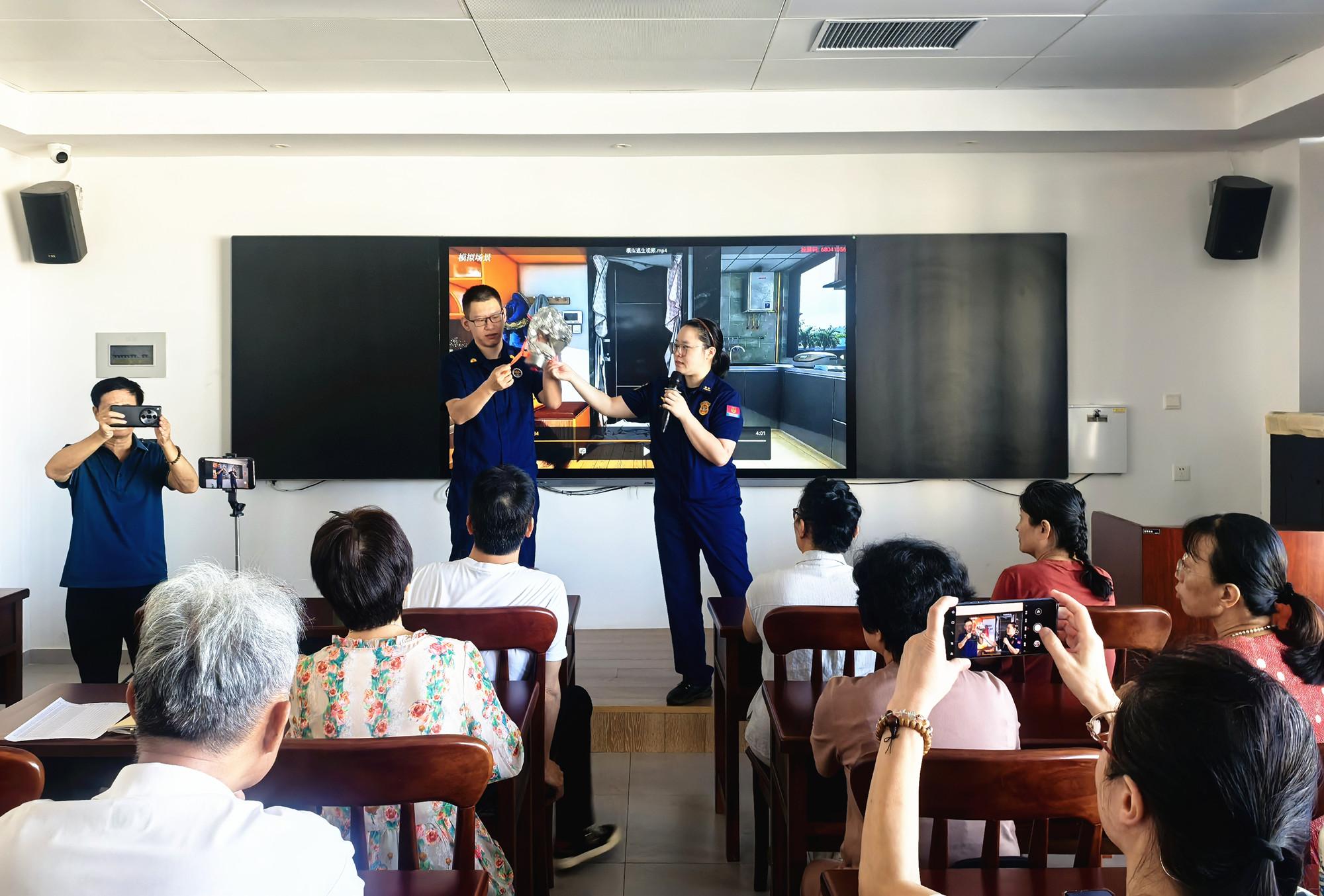 課堂上,消防宣講員突破傳統(tǒng)講授方式,巧妙運(yùn)用精心制作的模擬逃生視頻,引導(dǎo)老年人沉浸式體驗(yàn)不同火場情境下的應(yīng)對策略。通過對“小火快跑、濃煙關(guān)門”這一核心口訣的逐幀畫面剖析,將抽象安全法則轉(zhuǎn)化為具體、可操作行動指南,真正實(shí)現(xiàn)“場景化教學(xué)、實(shí)踐中領(lǐng)悟”的教育效果。消防宣講員還逐一講解滅火器、防煙面罩及滅火毯等常見消防器材使用要領(lǐng)與辨別技巧,并現(xiàn)場進(jìn)行演示操作,確保教學(xué)直觀易懂。 |