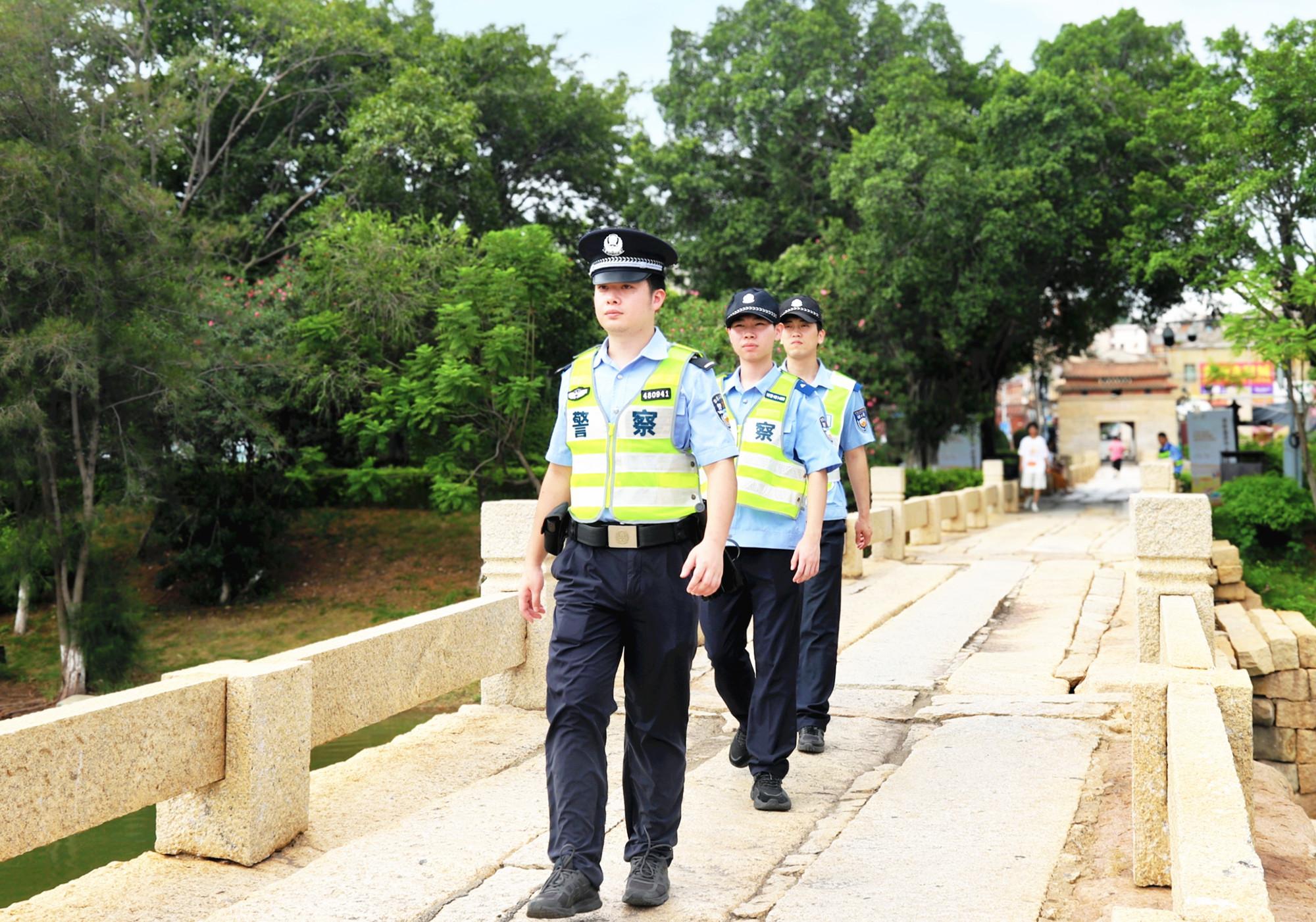 國慶假期,南安市公安局水頭派出所民警輔警全力守護五里橋景區平安。圖為民警在五里橋景區巡邏。 |