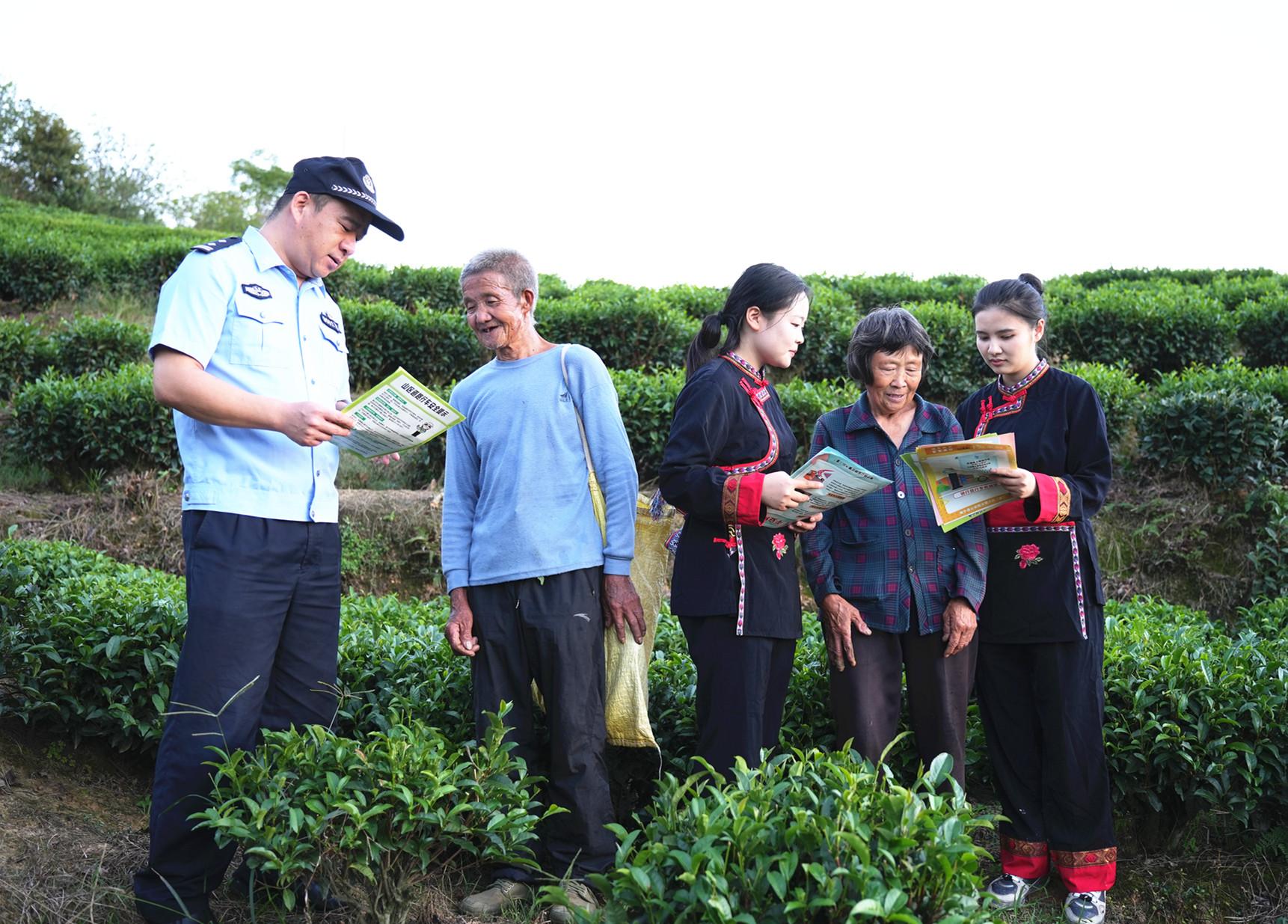 近日,壽寧縣公安局走進竹管垅鄉開展美麗鄉村行交通安全巡回宣講“螢火蟲計劃”活動。圖為民警與畬族志愿者在茶山向村民講解農村常見的交通安全知識。 |