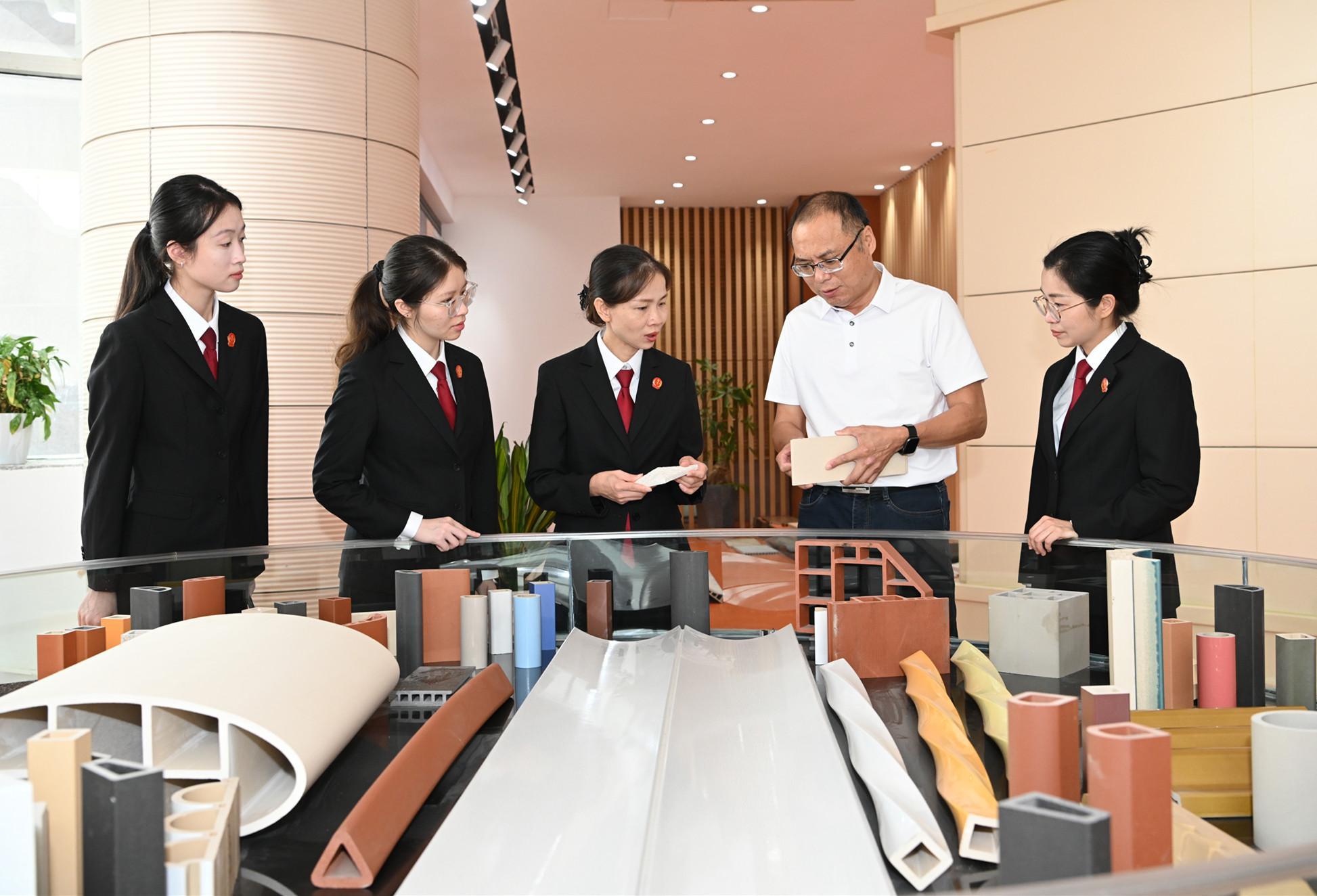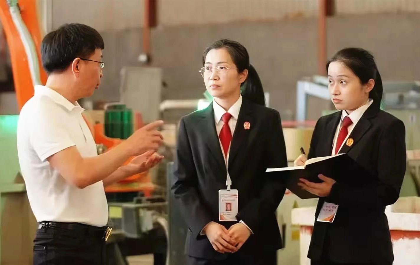 磁灶法庭干警深入企業走訪了解情況 “這樣的活動太好了,幫我們掃除了合同簽訂、知識產權保護中的法律盲區,以后經營更有底氣了。”一位企業代表感慨道。 不止于單次活動的“精準滴灌”,磁灶法庭還注重常態化普法護航。通過持續開展法商法治大講壇,采用線上直播、線下講座相結合的方式,系統宣講公司法、知識產權法等與企業經營密切相關的法律知識,累計覆蓋企業超萬家,精準回應民營經濟在發展中的司法需求。 企業有所需,法院有所應。面對民營經濟發展中的痛點,晉江法院堅持“辦一案、助一企、穩一鏈”,在磁灶法庭推出多項精準舉措:為轄區企業設立“涉企糾紛綠色通道”;推行“立案——調解——審判”全流程提速,將涉企案件平均審理周期縮短30%;出臺護企十大措施,全方位保障企業合法權益。 針對磁灶鎮勞動爭議案件激增趨勢,磁灶法庭在磁灶鎮綜治中心設立“燕萍法官工作室”,派駐楊燕萍、蔡燕萍兩位骨干法官下沉綜治中心開展訴前指導,成為泉州市法院系統首個法庭與鎮級綜治中心聯動的舉措,將勞動糾紛化解在訴前,有效減輕企業與勞動者的訴累。