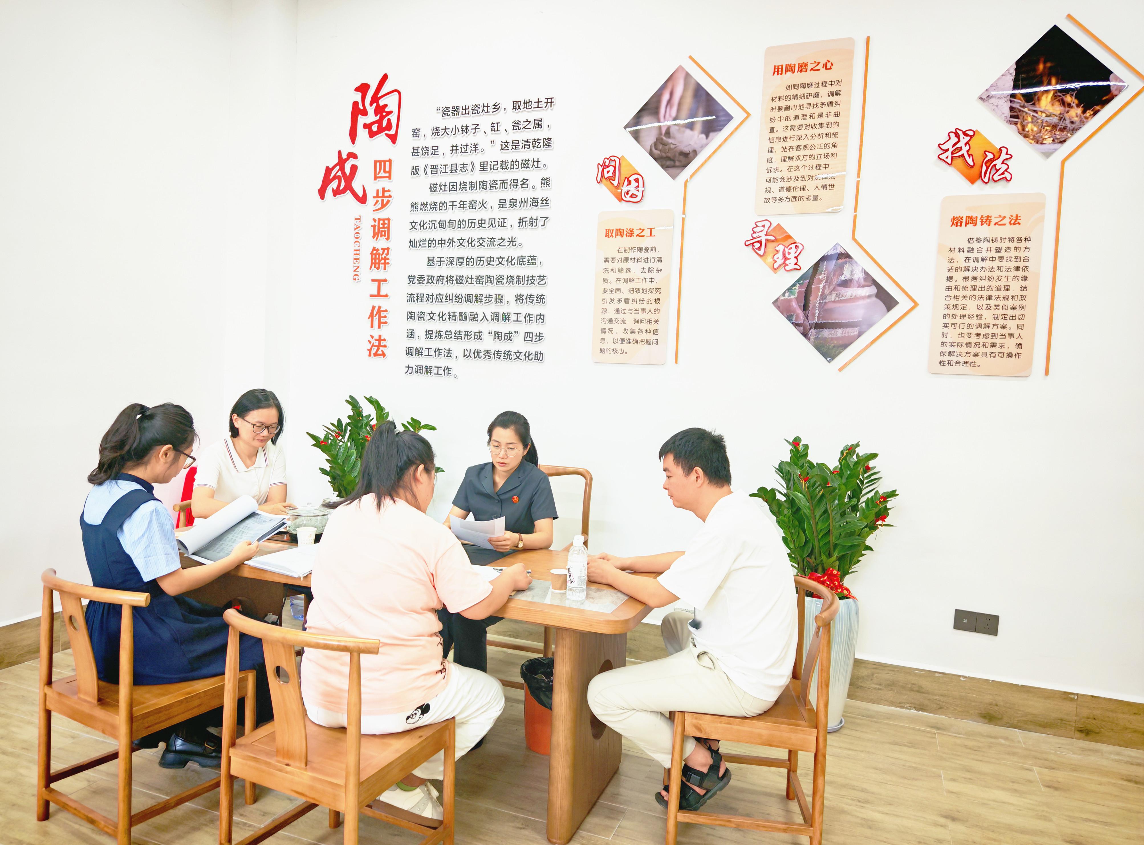 磁灶法庭法官運用“陶成”四步調解工作法,與人民調解員共同化解一起新類型勞動爭議糾紛 磁灶鎮是“中國陶瓷名鎮”,擁有1500多年制陶史,磁灶窯址更是被列入世界文化遺產點。為深入挖掘陶瓷文化內涵,磁灶法庭總結提煉出“陶成”四步調解工作法,即問因:取陶滌之工;尋理:用陶磨之心;找法:熔陶鑄之法;求和:成陶然之得,將磁灶窯陶瓷燒制技藝流程對應司法調解步驟,將傳統陶瓷文化融入調解工作內涵,實現法理與鄉情的有機統一,讓調解過程更易被群眾接受。“自該調解法推行以來,已成功化解矛盾糾紛380余件,調解成功率達92%。”磁灶法庭庭長李金玲介紹道。 為讓法治文化更貼近群眾,磁灶法庭引進當地文旅網紅IP形象“磁小龍”,打造特色楓橋法治文化走廊,并建設陶成調解室、紫瓷園等特色載體,推動傳統文化與司法實踐同頻共振,讓法治理念在潛移默化中深入人心。 此外,磁灶法庭還從多維度推動文化與法治融合:舉辦“綠佑·‘楓’雅頌”青年沙龍,激發青年參與基層治理的熱情;設立“法護松鶴”老年人權益工作站,保障老年人合法權益;指導轄區22個村修訂村規民約,倡導移風易俗新風尚。通過一系列舉措,晉江法院將傳統文化與法治精神深度融合,以優秀文化助力司法工作,為民營經濟發展培育良好的法治生態。 在多維發力下,晉江法院以“雙經驗”融合實踐書寫新時代基層司法答卷。作為試點的磁灶法庭,更用實打實的成效印證這一模式的生命力:2023年以來,通過非訴途徑化解糾紛4800余起,交出了一份法治護航民營經濟的亮眼答卷。 如今,這座民營經濟重鎮,正以“楓橋經驗”與“晉江經驗”的“雙輪驅動”,持續激活民營經濟發展的“一池春水”。而磁灶法庭的創新實踐,為全國民營經濟司法保障提供可復制、可推廣的“晉江范本”。 |