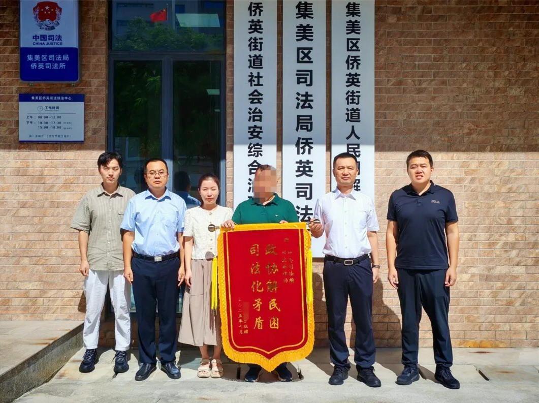 品牌名:同心解紛·法潤僑英 品牌內涵:廈門市集美區司法局僑英司法所積極踐行新時代“楓橋經驗”,攜手多方力量開展矛盾糾紛化解工作,設立省市區三級政協委員調解工作室,整合政協委員的專業資源與社會影響力,構建“基層調解+政協智囊”協同解紛模式;攜手人大代表參與解紛,發揮人大代表來自人民、扎根人民的優勢,增強調解親和力和公信力;與拘留所攜手共建,深化“所所”拘調聯動,加強在人民調解、信息預警、業務培訓等方面合作,既協力化解矛盾糾紛,又助力被拘留人員的心理疏導與行為矯正,對維護社會和諧穩定具有積極意義。 “太謝謝了,你們比我們自己還要上心!”近日,廈門某建筑公司給廈門市集美區司法局僑英司法所送上一面錦旗,感謝調解員幫忙卸下糾紛“包袱”,讓項目工程得以順利進行。