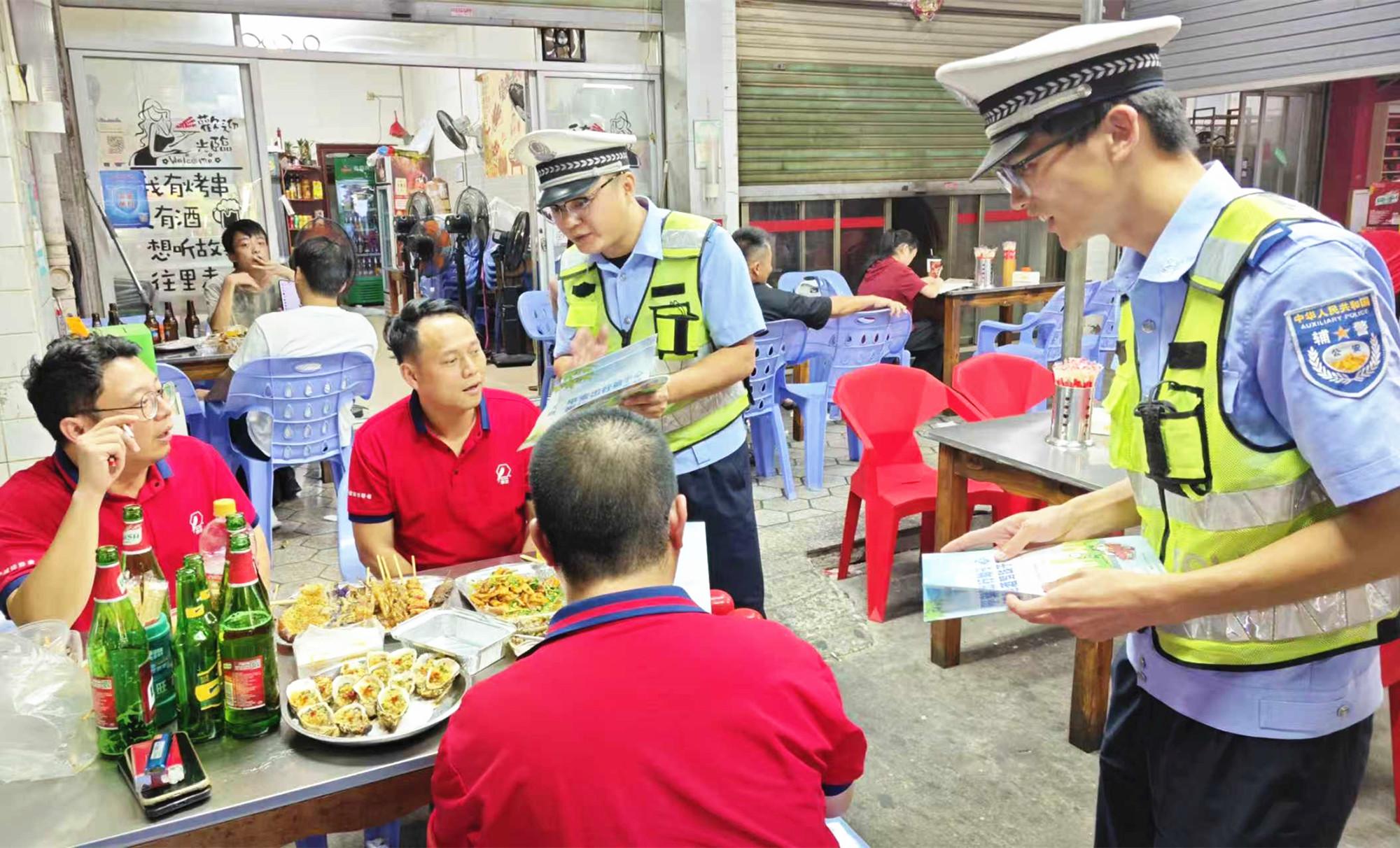 近日,惠安縣公安局交警大隊民警走進夜市大排檔、餐館酒店等酒駕風險較高的場所,開展精準宣傳,讓“喝酒不開車,開車不喝酒”的交通安全理念深入人心。 |