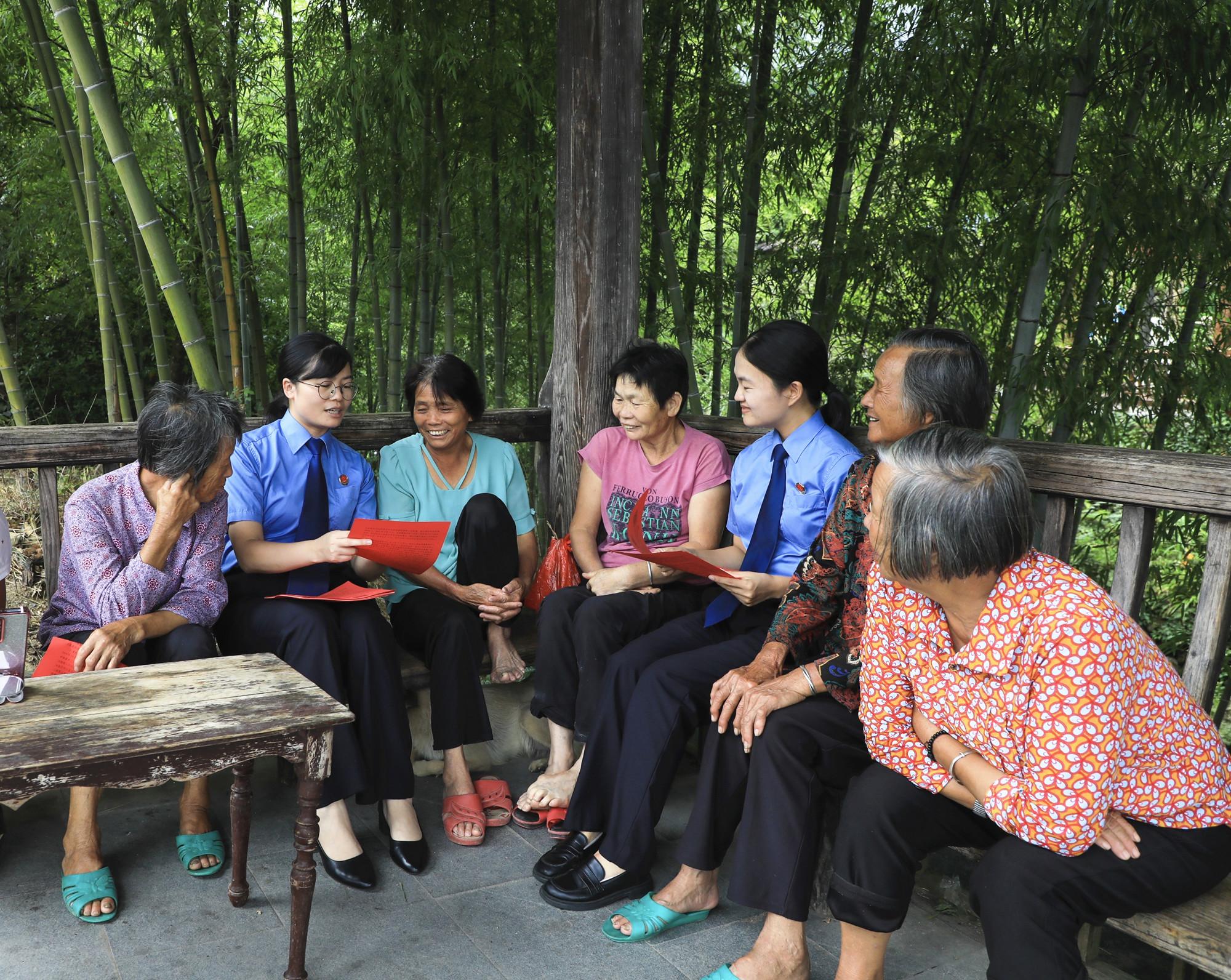 近日,武平縣檢察院組織干警走進城廂鎮云寨村,開展生態保護法治宣傳。圖為檢察干警向群眾講解非法狩獵、濫伐林木等破壞生態違法犯罪行為的危害和法律后果。 |