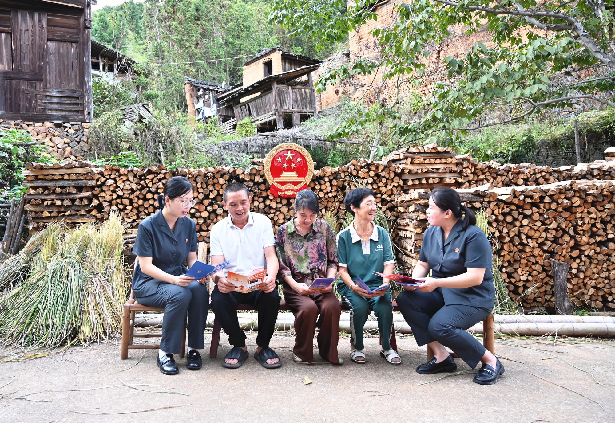 近日,建甌市人民法院干警把起訴狀、答辯狀示范文本送到村民家門口,并向村民發(fā)放最高法院制作的《起訴狀答辯狀示范性文本應(yīng)用指南》宣傳手冊。圖為干警向村民講解“兩狀”相關(guān)法律知識。 |