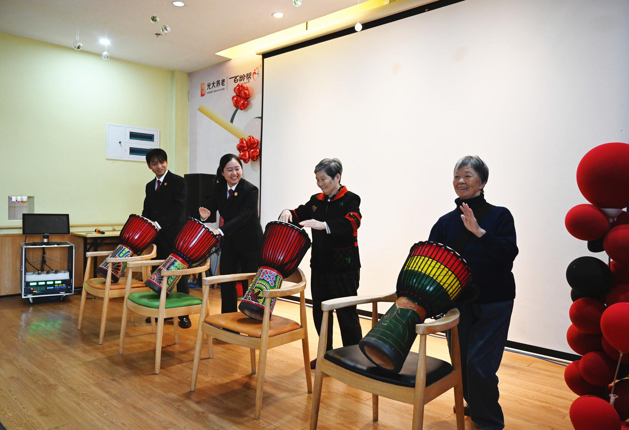 近日,建甌市人民法院城區法庭干警走進養老中心,開展“情暖重陽節 法潤夕陽紅”主題活動,為20余名老人送上別樣節日關懷。圖為法官和老人一起擊打非洲鼓。 |