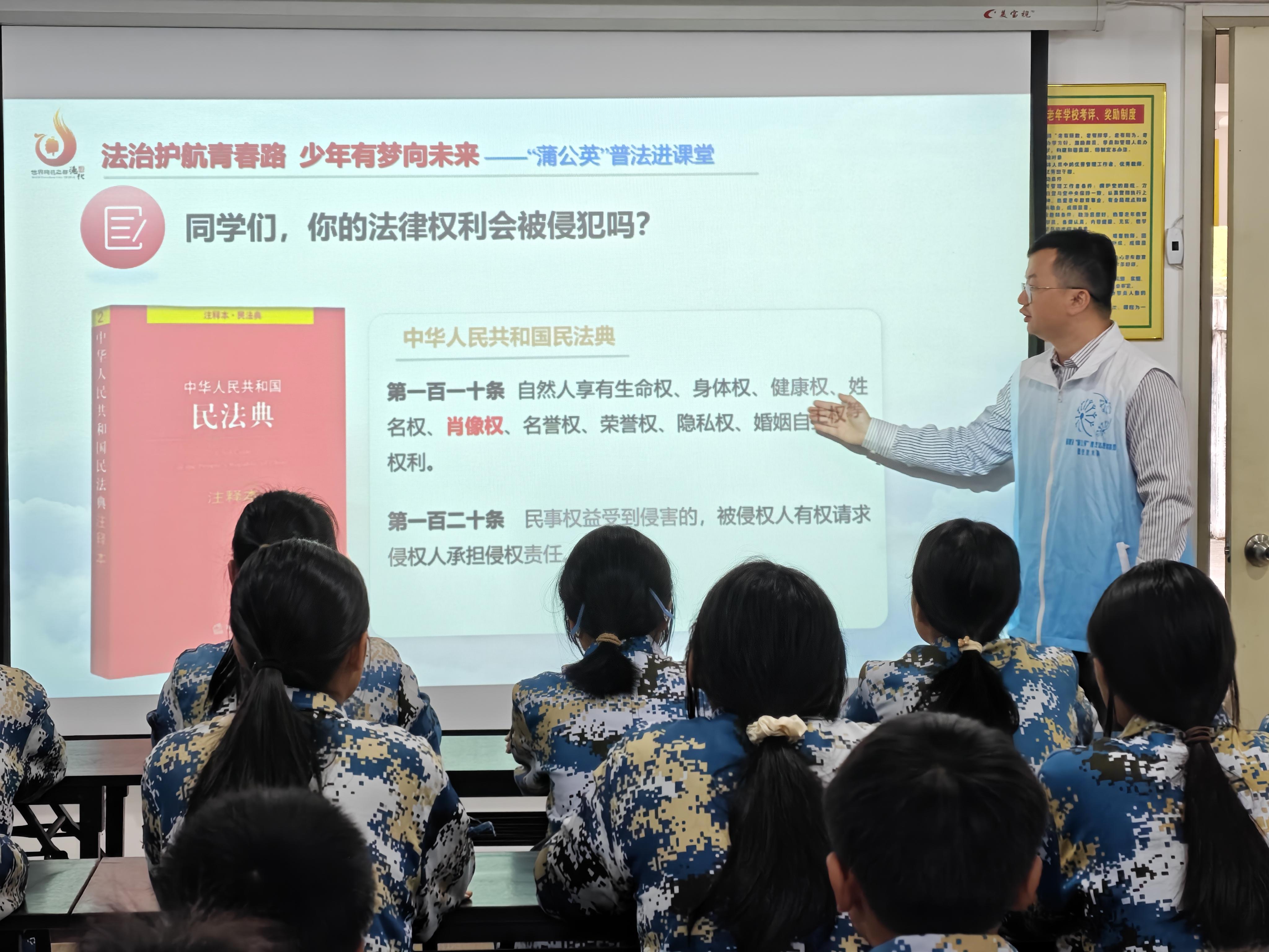 近日,德化縣美湖鎮(zhèn)綜治中心聯(lián)合司法所緊抓《法治宣傳教育法》出臺(tái)契機(jī),組織“蒲公英”普法志愿者走進(jìn)大龍湖拓展基地研學(xué)課堂,為學(xué)生開(kāi)展主題普法活動(dòng)。圖為志愿者引導(dǎo)學(xué)生學(xué)習(xí)《憲法》《民法典》,深入思考“什么是法律”“怎樣依法維權(quán)”“如何成為守法小公民”等法律法規(guī)。 |
