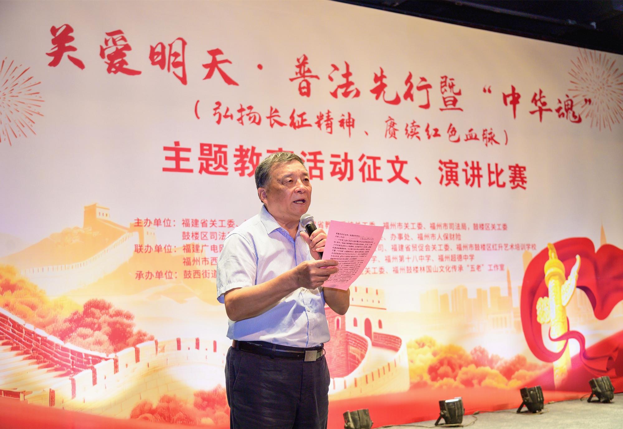 近日,由福建省關(guān)工委、福建省司法廳、福建省教育系統(tǒng)關(guān)工委、福州市關(guān)工委、福州市司法局、鼓樓區(qū)關(guān)工委、鼓樓區(qū)司法局、鼓樓區(qū)教育系統(tǒng)關(guān)工委等單位承辦的關(guān)愛明天·普法先行暨“中華魂”(弘揚長征精神 賡續(xù)紅色血脈)主題教育活動征文、演講比賽決賽在西湖電影院舉辦。圖為福建省關(guān)工委副主任、法治委主任、福建省關(guān)愛工作團常務副團長陳勇代表主辦方致辭。 |