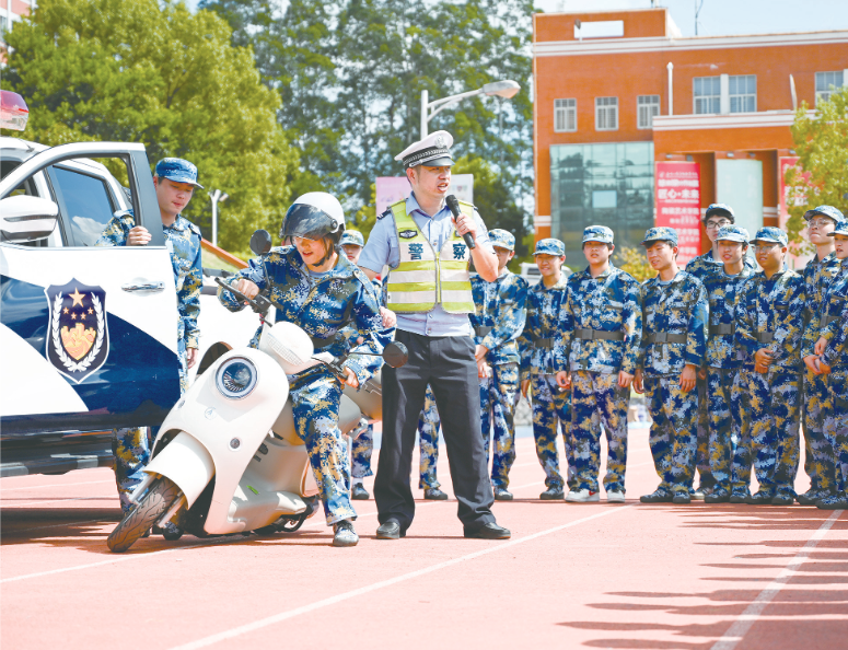 近日,德化縣公安局民警走進泉州工藝美術職業學院,為學生上了一堂形式多樣、內容豐富的交通安全課。圖為民警通過“沉浸式”情景演繹的方式,向學生普及車輛盲區知識和如何避免“開門殺”。 |