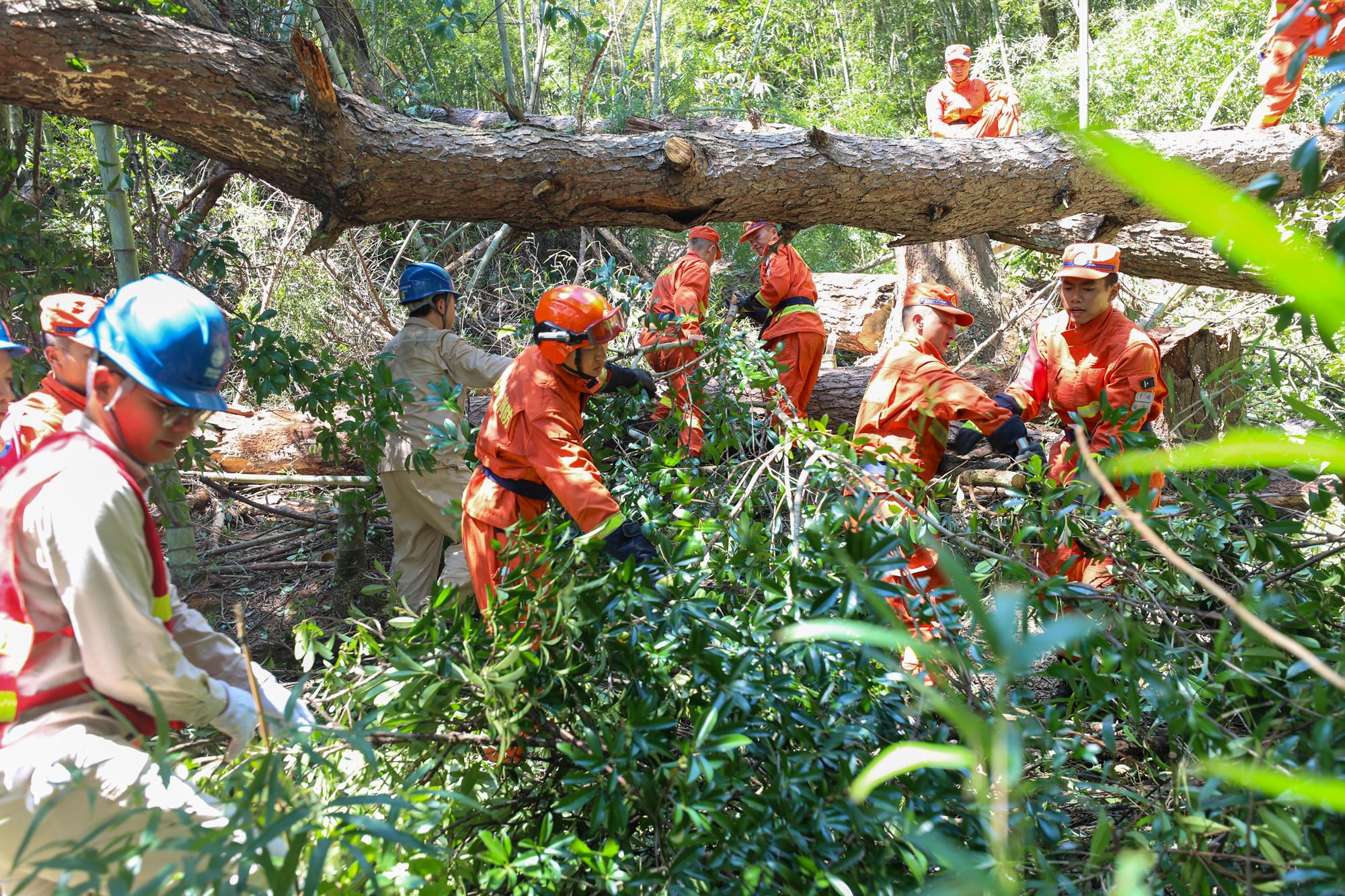 消防員和電力工作人員合力清理樹枝 行動中,工作人員發(fā)現(xiàn)永定清福樓周邊,3棵高大枯木緊挨土樓,由于長期風(fēng)化和蟲蛀,隨時(shí)有傾倒風(fēng)險(xiǎn),可能直接對土樓造成傷害或壓垮電線間接引發(fā)森林火災(zāi)。 針對這一緊急情況,工作人員立即啟動隱患處置流程,利用警戒線設(shè)立安全作業(yè)區(qū),并清除安全區(qū)內(nèi)影響作業(yè)的雜物。隨后,使用拋繩器拋射繩索對枯木進(jìn)行固定,防止其向土樓方向傾倒,再利用油鋸將枯木沿預(yù)定方向切割搬離。 在處置枯木隱患的同時(shí),工作人員發(fā)現(xiàn)周邊部分樹木高出并緊挨輸電線路,且林下可燃物載量較大,存在火災(zāi)隱患。為此,工作人員采取“科技+人工”相結(jié)合的方式,利用異物遠(yuǎn)程清除器、油鋸、砍刀等工具對樹木進(jìn)行清除。經(jīng)過5個(gè)小時(shí)作業(yè),火線隱患和安全險(xiǎn)點(diǎn)被成功排除,土樓周邊消防安全環(huán)境得到顯著改善。 此外,針對當(dāng)前旅游人數(shù)增多,火災(zāi)隱患增加的實(shí)際,工作人員對土樓周邊民宿的消防和用電等設(shè)施進(jìn)行檢查,進(jìn)一步降低火災(zāi)風(fēng)險(xiǎn)。 |