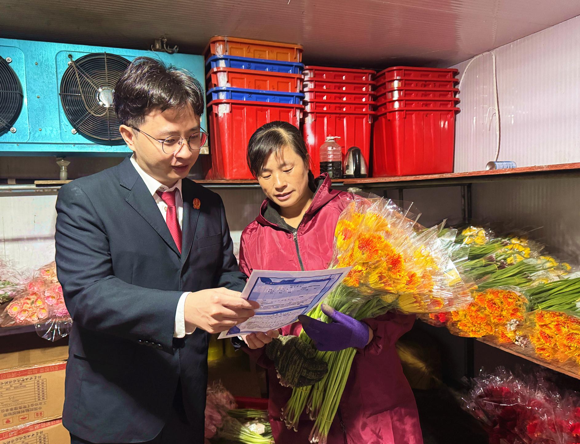 近日,清流法院嵩溪法庭干警走進林畬鎮閩西花卉交易物流中心開展普法宣傳,干警用通俗易懂的語言向商戶講解相關法律知識。 |