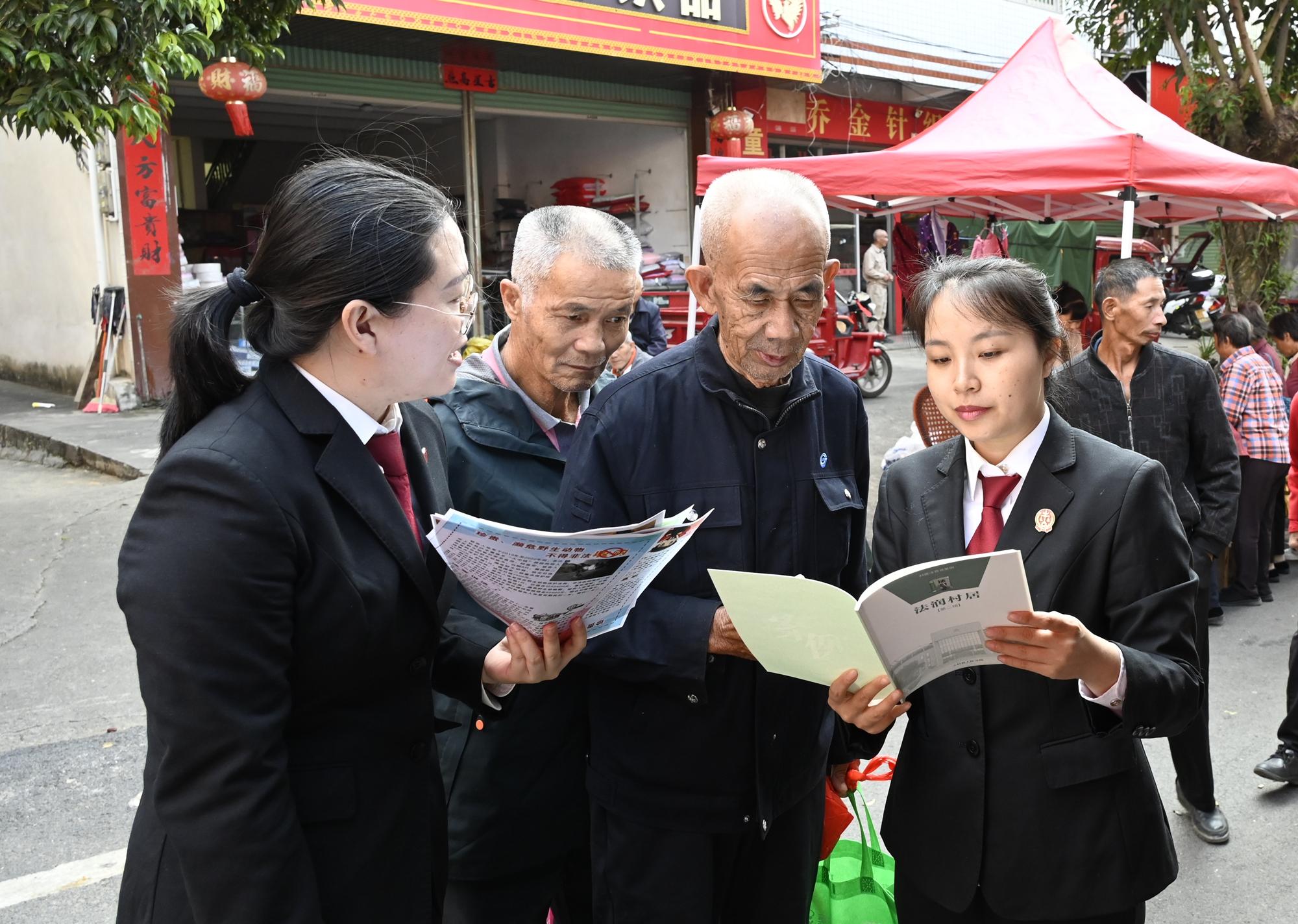 近日,上杭縣人民法院聯合縣公安局森林警察大隊前往官莊畬族鄉,開展秋冬季森林防火宣傳活動。圖為法院干警向集鎮群眾講解森林防火法律知識。 |