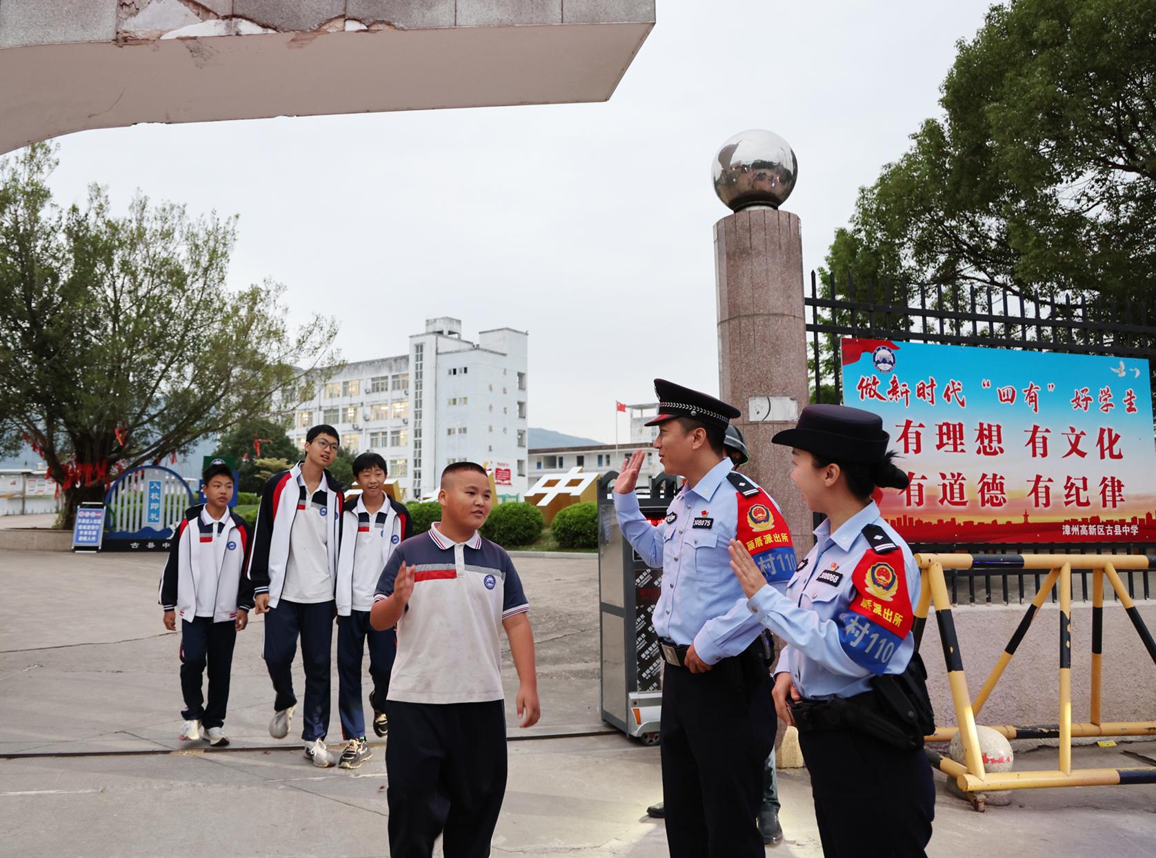 近日,漳州市公安局高新區分局組織警力走進古縣中學,與學校保安聯合設立“護學崗”,保障學生上學、放學安全。圖為民警在校門口執勤。 |