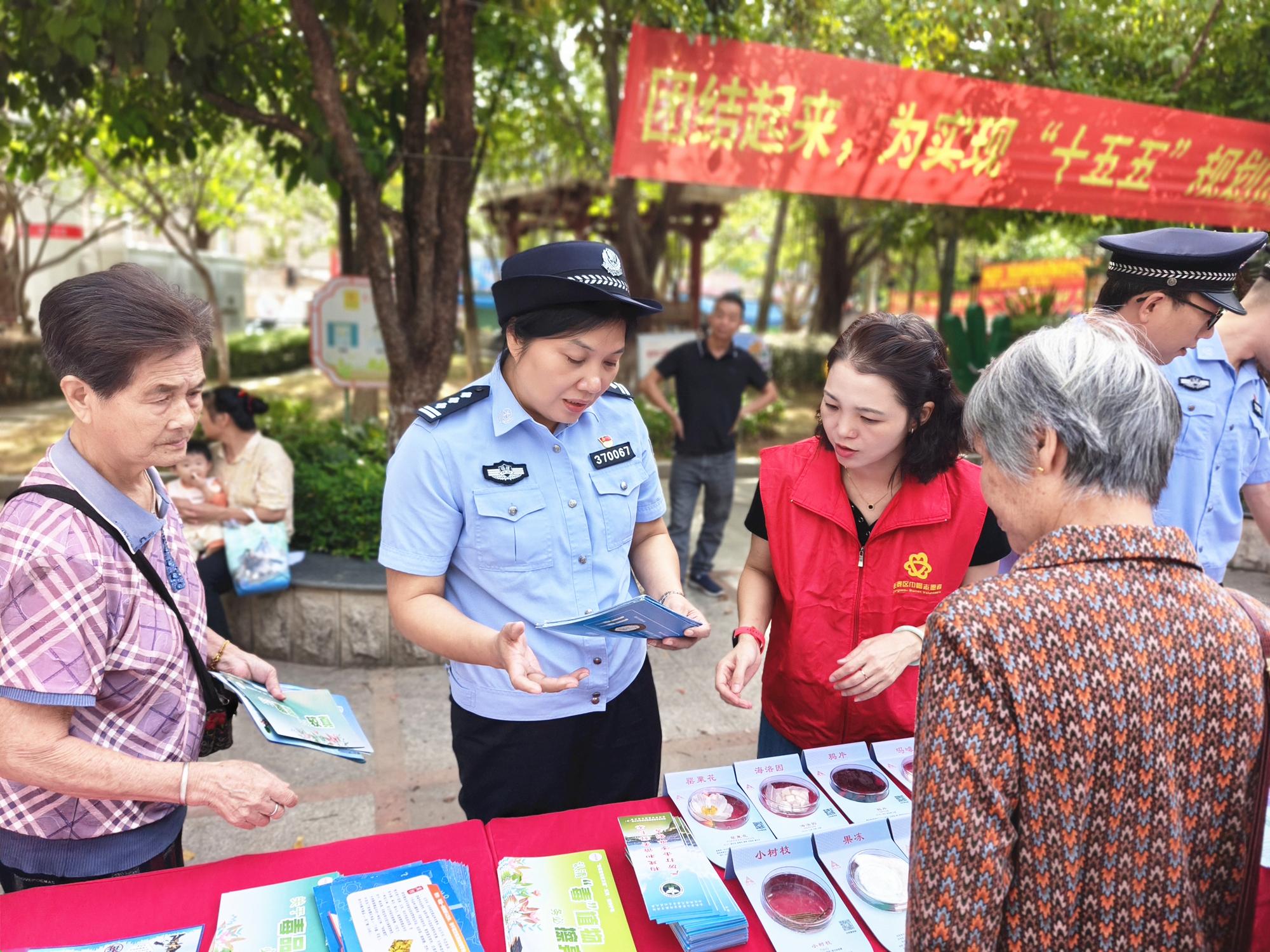 近日,漳州市長泰區禁毒辦組織開展“健康人生 綠色無毒”系列宣傳活動。圖為民警在社區宣傳點通過展示毒品仿真模具向群眾講解禁毒知識。 |