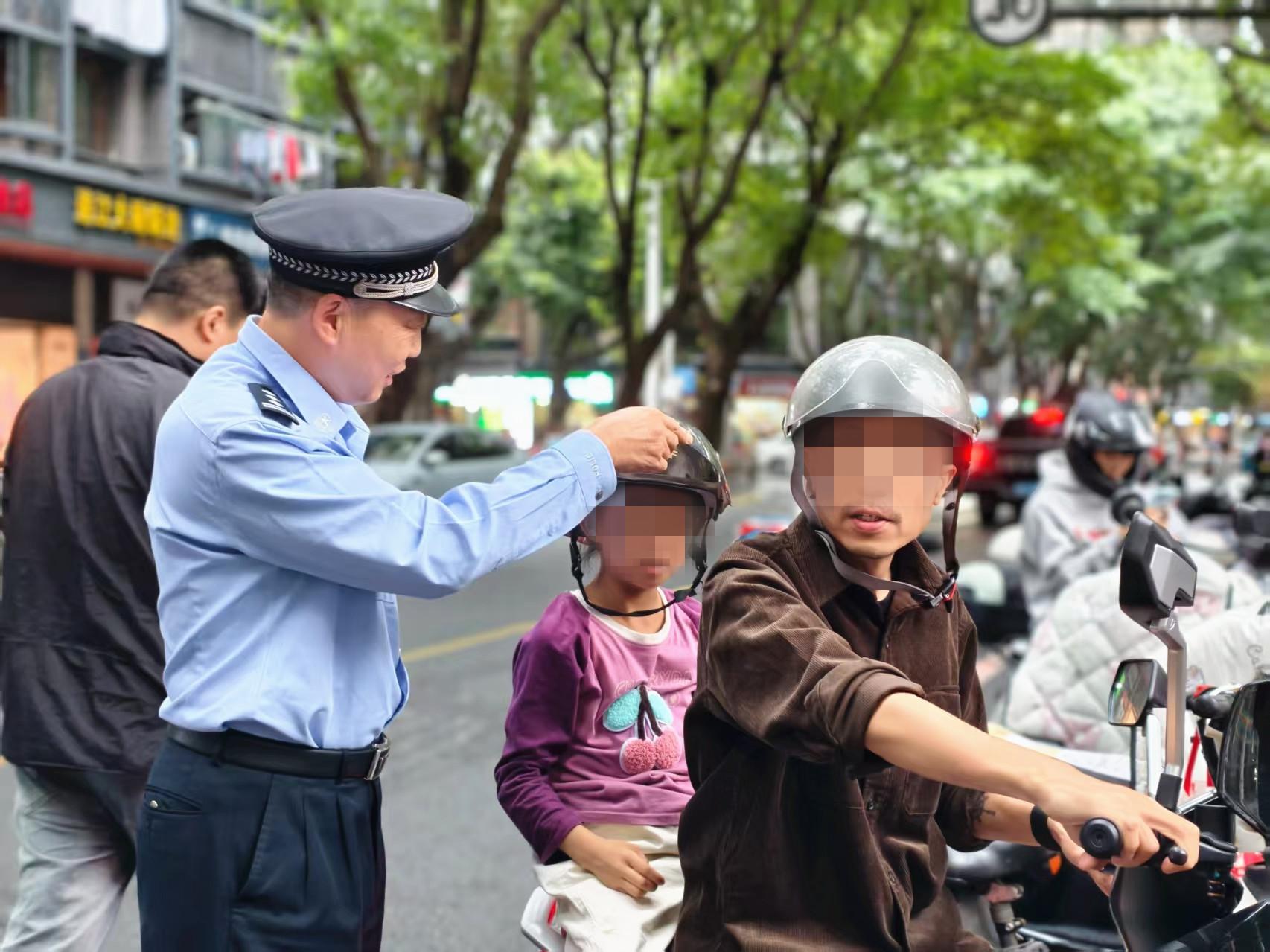 近日,福州市公安局蒼霞派出所組織民警深入臺江第一中心小學(xué)開展交通安全宣傳活動,民警現(xiàn)場勸導(dǎo)、普及安全出行知識。圖為放學(xué)時分,民警在校門口提醒學(xué)生及家長規(guī)范佩戴安全頭盔。 |