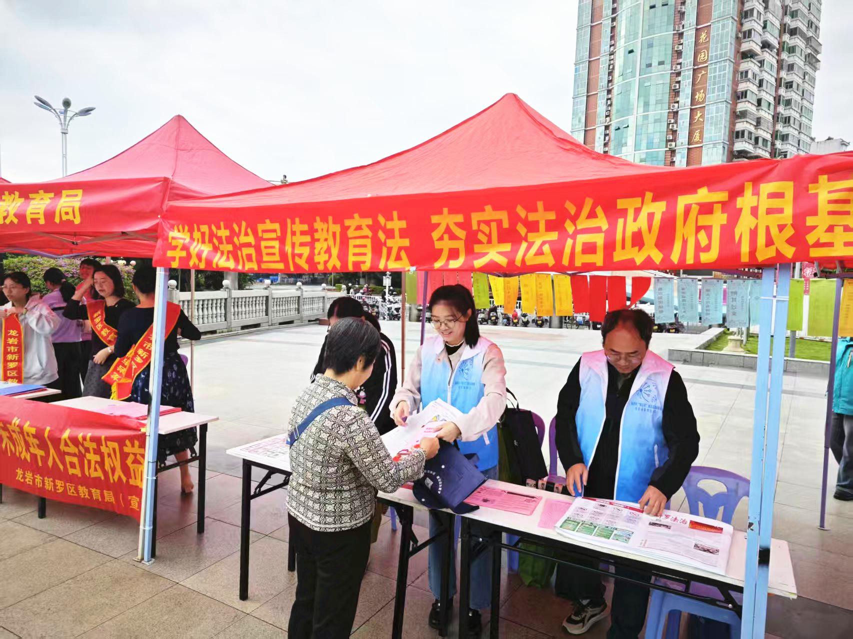 近日,龍巖市新羅區司法局組織“蒲公英”普法志愿者以《中華人民共和國法治宣傳教育法》為核心開展普法活動,增強群眾知法、懂法、用法的意識和能力。圖為“蒲公英”普法志愿者向群眾發放普法宣傳手冊。 |