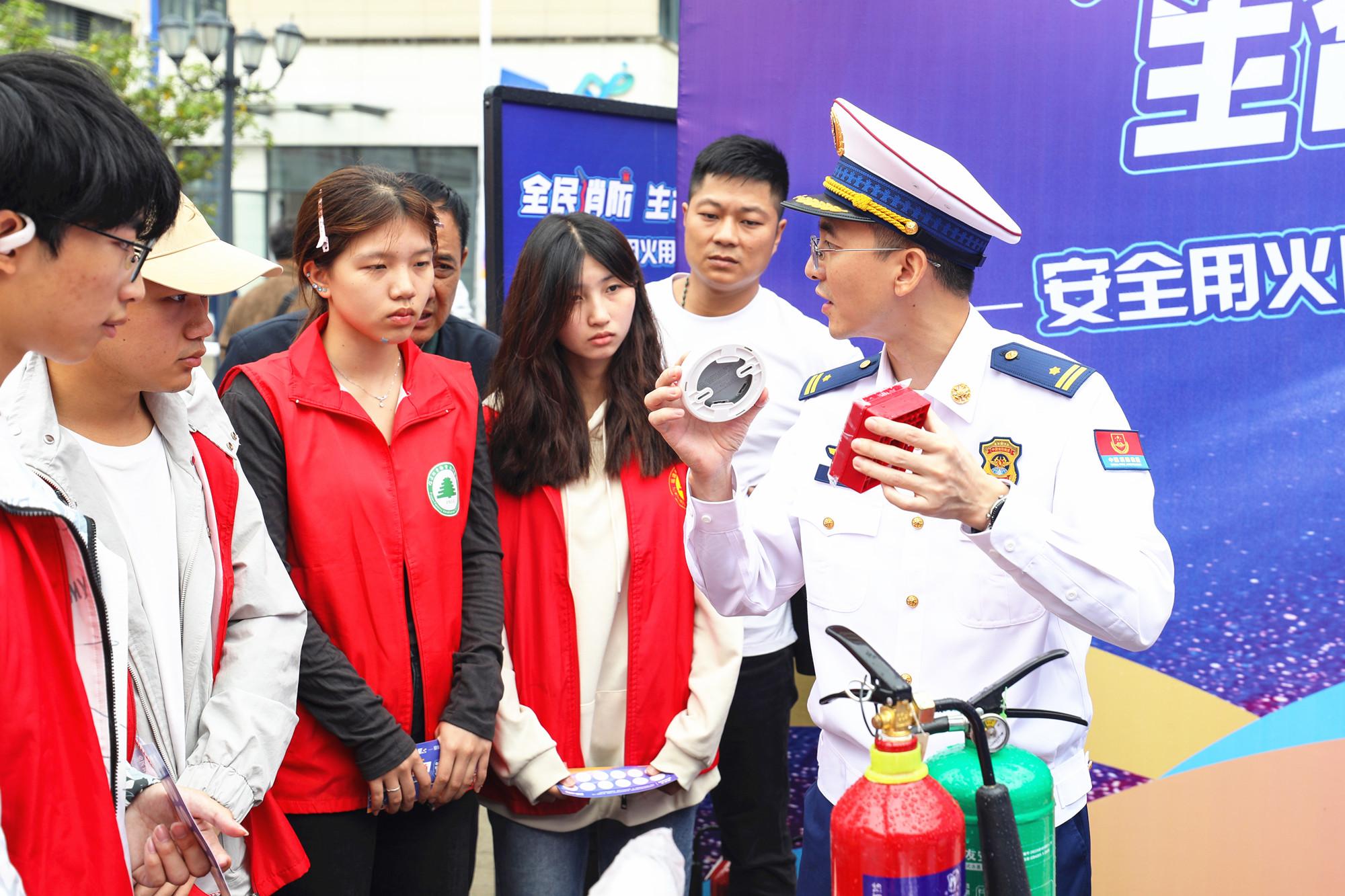 消防指戰(zhàn)員向群眾講解如何辨別消防產(chǎn)品真?zhèn)?/span> 活動以“全民消防、生命至上——安全用火用電”為主題,聚焦“防、滅、逃”能力建設(shè),設(shè)置消防裝備、消防常識、科普體驗(yàn)和趣味游戲等互動體驗(yàn)區(qū)域。消防裝備區(qū)里,遠(yuǎn)距離救生拋投器、生命探測儀等裝備整齊列陣,指戰(zhàn)員現(xiàn)場指導(dǎo)群眾體驗(yàn)穿戴滅火救援服等裝備;消防常識區(qū)通過圖文展板系統(tǒng)解讀企業(yè)消防、用火用電等安全要點(diǎn),咨詢臺工作人員發(fā)放宣傳手冊、講解消防科技和產(chǎn)品,并解答群眾疑問;科普體驗(yàn)區(qū)成為最受歡迎的打卡地,VR設(shè)備模擬的火災(zāi)現(xiàn)場讓體驗(yàn)者“親歷”火災(zāi)現(xiàn)場,電子隱患查找系統(tǒng)鍛煉實(shí)用排查能力,粉塵爆炸實(shí)驗(yàn)則直觀演示揭示安全風(fēng)險(xiǎn),逃生體驗(yàn)屋與滅火實(shí)操區(qū)更讓參與者掌握了硬核自救技能;趣味競答區(qū)的有獎(jiǎng)問答、安全轉(zhuǎn)盤和消防IP玩偶互動,讓消防安全知識在輕松氛圍中深入人心。 消防指戰(zhàn)員向群眾講解如何辨別消防產(chǎn)品真?zhèn)巍?/p> |
