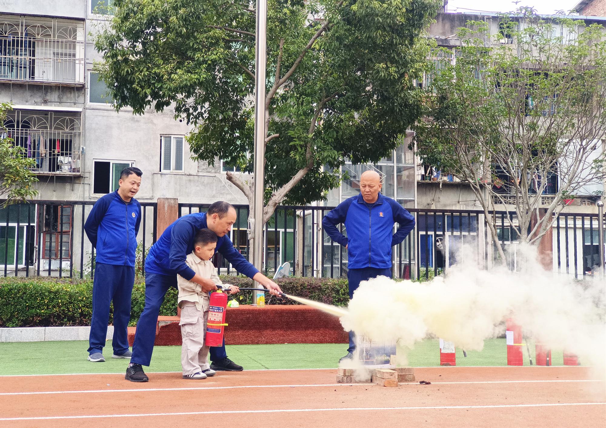 近日,閩侯縣鴻尾鄉政府組織鄉消防隊員到轄區小學開展消防安全演練,切實增強師生們的消防安全意識和自防自救能力,圖為演練現場。 |