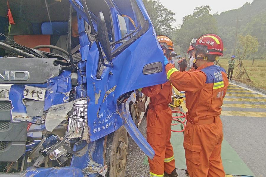 本報訊 近日,南平市建陽區發生一起兩車相撞事故,有駕駛員被困。消防救援人員經過10分鐘的緊急救援,成功將被困人員救出。