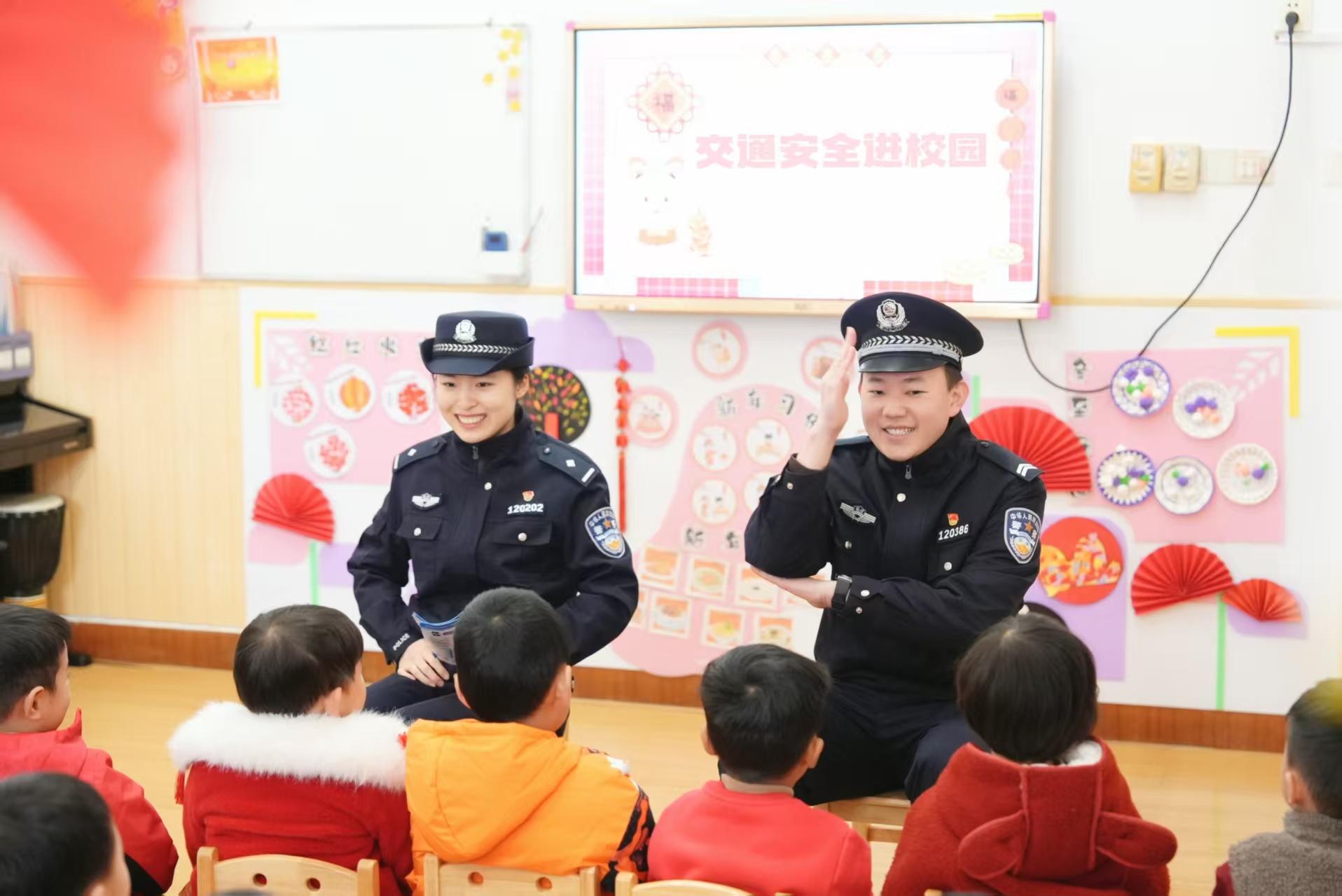 連日來,福州市公安局義洲派出所民警化身“安全宣傳員”,走進轄區校園,開展“文明交通 安全‘童’行”宣傳活動。圖為民警向學生普及乘坐電動車安全知識。 |