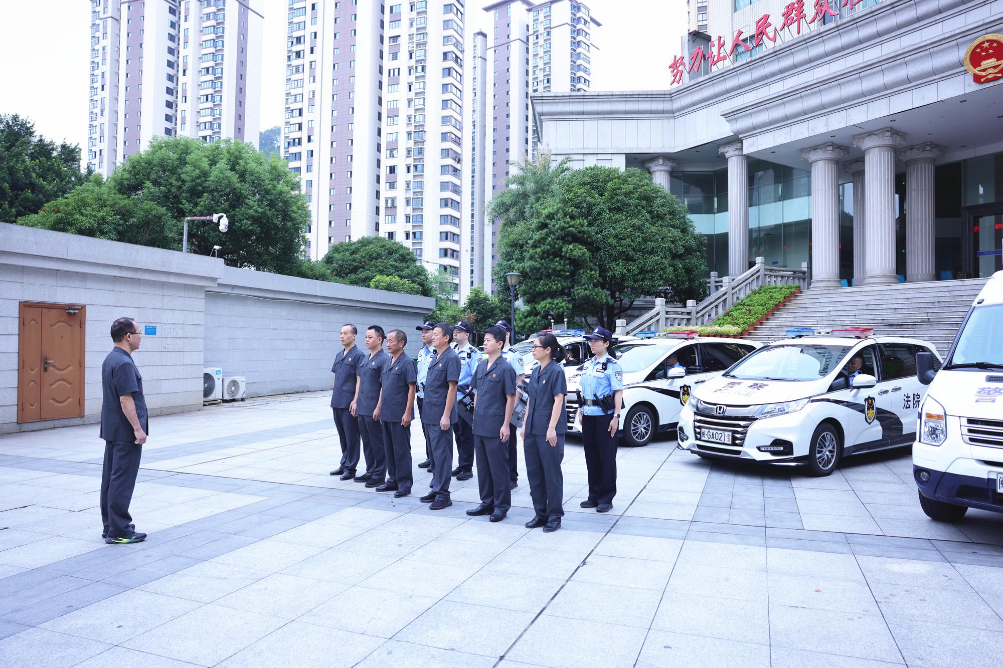 近日,三明中院執(zhí)行局組織開展專項執(zhí)行行動。圖為參加行動的干警整裝待發(fā),聽取工作任務安排,明晰工作紀律要求。 |