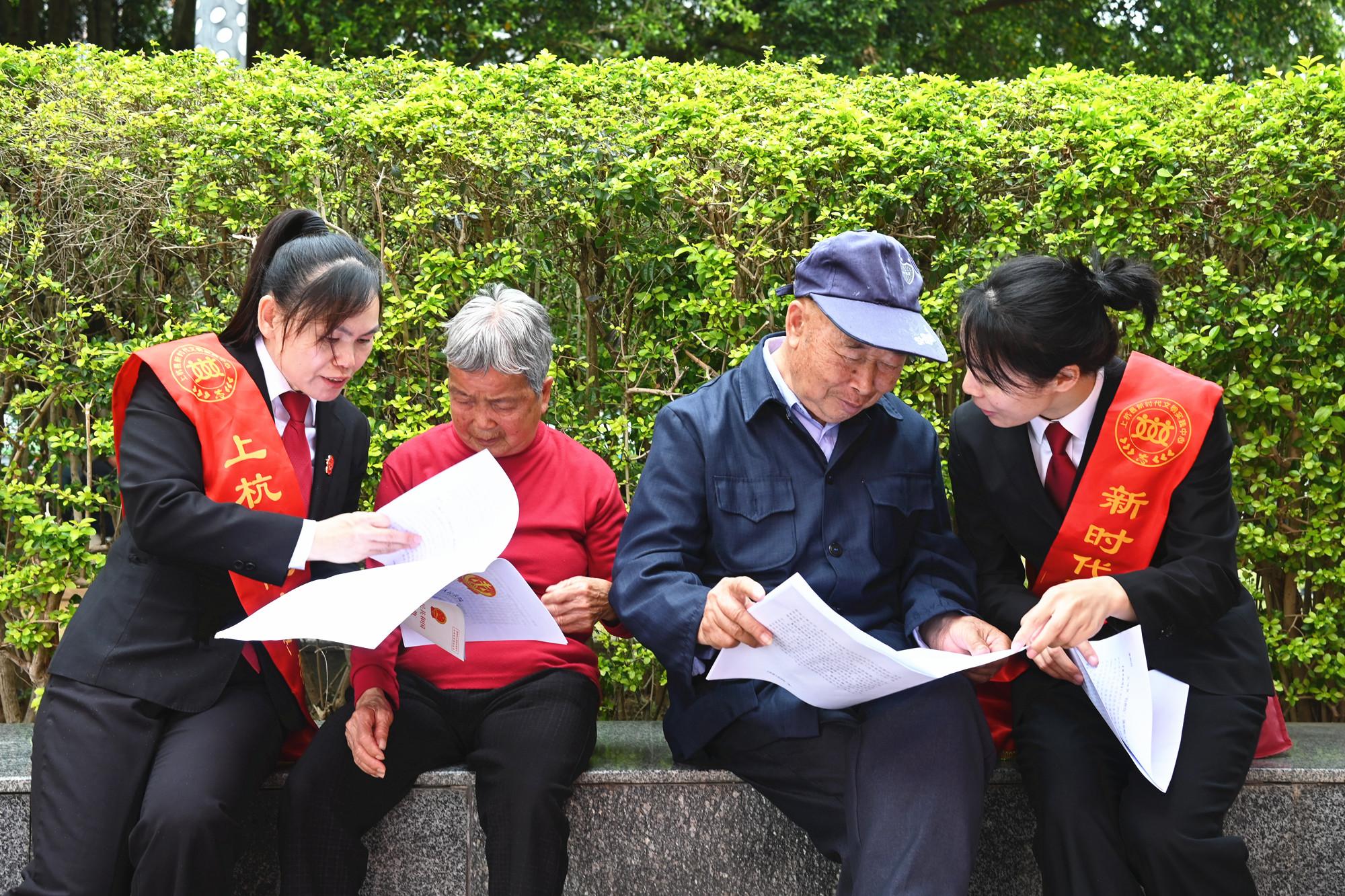 近日,上杭法院干警到轄區公園、街頭等地,聚焦熱點問題開展普法宣傳,進一步增強群眾法治意識。圖為干警向群眾講解相關法律知識。 |