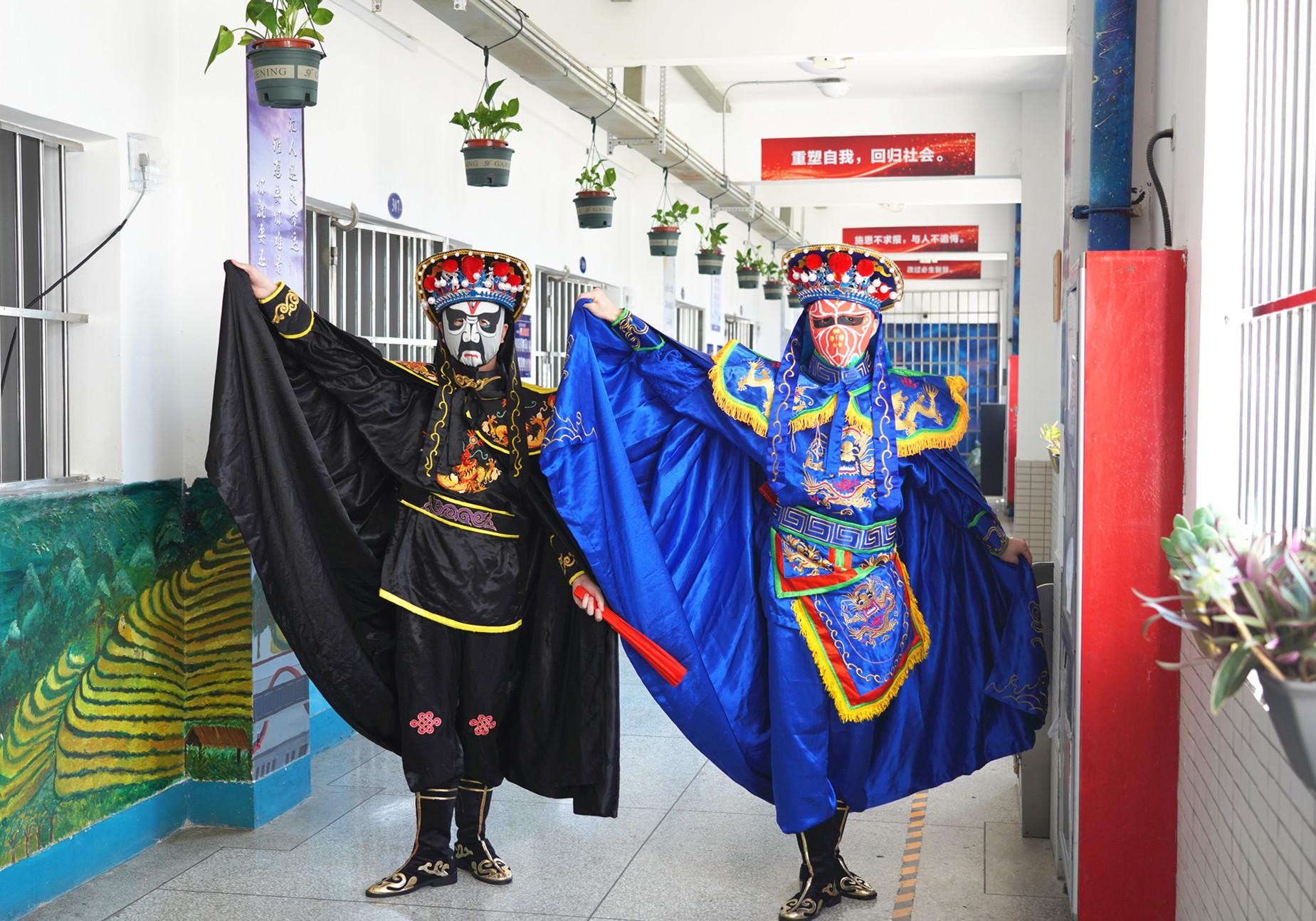 簇簇新綠在花壇中彰顯著新機,手繪的《千里江山圖》如流動畫卷牽引視線,走廊墻上的油畫色彩飽滿,每一筆都凝結著創作者的心意與溫度。耳畔不時傳來規整有序的節拍,文藝小隊正緊鑼密鼓地排練,或踏歌起舞,或奏樂和聲,專注的韻律里滿是投入的熱忱……這充滿生機與暖意的場景,閩江監獄特殊病犯(HIV)監區每日都在上演。 近年來,閩江監獄特殊病犯(HIV)監區民警在監區管理的方寸天地間,既做監管安全的守護者,又當救贖心靈的“擺渡人”,他們把崗位當作助力特殊病犯(HIV)新生的陣地,以責任為舟、以藝術為橋、以匠心為引,讓荒蕪的心田在色彩與韻律中,漸漸生出向善向美的新芽,鋪就一條充滿人文溫度的矯治之路。 種下希望于方寸之間 推開監區大門,一抹抹鮮活的綠映入眼簾——走廊的花壇里,一排綠蘿垂著嫩莖,葉片上還沾著晨露,操場的角落處,幾只多肉擠在花架上,胖乎乎的葉片透著韌勁。這些綠植,沒有名貴的品種,卻都透著精心養護的生機,它們大多是服刑人員動手埋下種子,在每日澆水松土照料中長大的。 “誰都盼著新生。”監區民警陳子仁說,“就像普通人家里擺上幾盆綠植,日子會多些生氣一樣,他們也需要這樣一份生命的寄托,能在這里看到成長的希望。” 看似簡單的種植活動,早已不只是美化環境那么簡單。服刑人員張某每天放風時,總會第一時間趕到自己的負責的區域前,小心翼翼地松土。“剛開始只是跟著大家種,后來看著種子發了芽,小苗一點點長高,心里突然就有了念想,原來我還能把一條生命照顧好。”張某表示。 在監區各個角落茁壯生長的小小綠植,像一條條溫柔的紐帶,一頭連著服刑人員渴望改變的內心,一頭牽著外面那個充滿希望的世界。越來越多的服刑人員在澆水、施肥、修剪的過程中,慢慢學會了耐心,懂得了責任,更在看著綠植抽枝展葉的瞬間,重新觸摸到生命的萌動。 勾勒內心于畫布之上 曾有一幅畫,畫布上只有黑白灰,連綿的黑色山巒壓得人喘不過氣,山間石頭透著冷硬的氣息。那是2023年8月,初入監的服刑人員夏某創作的作品。近日,他捧著一幅新作品找到陳子仁,畫中紅色的果實像燃著的小燈籠,色彩亮得晃眼。“那一瞬間不用多說什么就能感覺到,他心里的那片陰霾散了。”陳子仁說。 艾感服刑人員在民警的指導下繪畫。(潘雯君 攝) 這份心靈的覺醒與轉變,離不開監區民警的用心教導。他們不僅牽頭成立油畫興趣小組,還將藝術的種子播撒到監區的每一個角落。2021年春天,民警籌備油畫興趣小組,見服刑人員創作熱情高漲,又特意組織墻壁彩繪活動,帶領他們在走廊墻面一筆一畫勾勒,青綠色的山巒層層疊疊,黛色的江水蜿蜒流淌,原本單調的墻面,在民警的指導與服刑人員的協作下,變成了一幅舒展的立體畫卷。“剛開始我們都以為,能有支畫筆就不錯了,沒想到警官特意為我們購置專業畫材,從顏料、畫布到調色盤一應俱全。”服刑人員李某說。 為了讓作品被更多人看見,民警還特意找來精致的畫框,為每幅作品裝裱妥當,并聯系其他監區,促成畫作在各監區巡展。在親情幫教活動中,服刑人員看見家屬一遍遍撫摸畫框,聽見他們說“沒想到你能畫出這么好的畫”時,眼中閃現出了自信與光芒。 唱響新聲于高墻之內 “為救李郎離家園,誰料皇榜中狀元……”清晨的監區里,婉轉的黃梅戲唱腔準時響起,驅散了晨霧的微涼。“6時到6時45分,是我們雷打不動的戲曲排練時間。”參加戲曲小組的服刑人員詹某放下水袖,眼里滿是投入,“大家都很積極,就盼著能把腔唱得更準些,身段練得更穩些。” 艾感服刑人員在民警的指導下學習戲曲變臉。(潘雯君 攝) 服刑人員的排練曲目像一串多彩的珠鏈,串起了不同劇種的經典:《女駙馬》的天真爛漫、《定軍山》的豪情壯志,都被他們一遍遍揣摩、演繹。這背后同樣藏著民警細致入微的支持:擔心排練缺背景音樂,就抽出業余時間熬夜幫著篩選、下載;見大家唱腔、身段有瓶頸,就聯系外聘的戲曲老師,定期到監區開展輔導。 不只戲曲,歌曲創作也成了服刑人員抒發心聲的窗口。在民警的悉心指導下,有人改編《玫瑰少年》,將自己對過往的反思、對未來的期盼融入歌詞,有人寫下原創歌曲,唱出對家的思念、對新生的渴望。當這些旋律在監區的角落輕輕響起,曾經隔絕的心房被音符敲開,服刑人員在旋律與唱腔中,慢慢重建與彼此、與外界的信任,找回失落已久的勇氣與力量,也讓“新生”成了能唱進歌里的真切期盼。 |