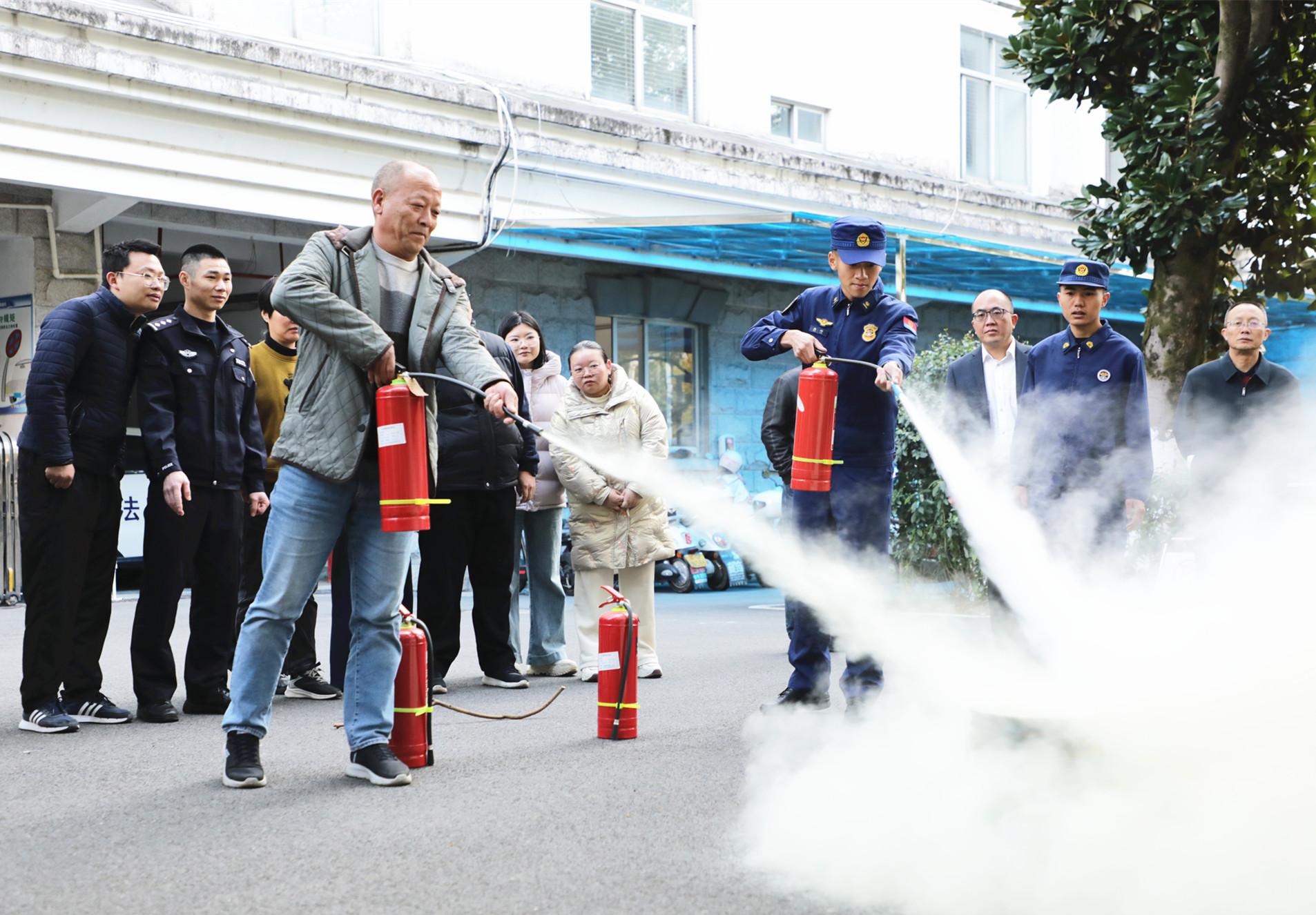 近日,寧化縣人民法院開展安全教育暨消防疏散演練活動,邀請寧化縣消防救援大隊消防員為全院干警作安全培訓。消防員通過圖文并茂的形式,講解常見消防安全隱患和法律責任、火災應對撲救方法、火場逃生自救互救方法及消防器材使用等知識。圖為實操學習中,干警使用滅火器撲滅模擬火源。 |