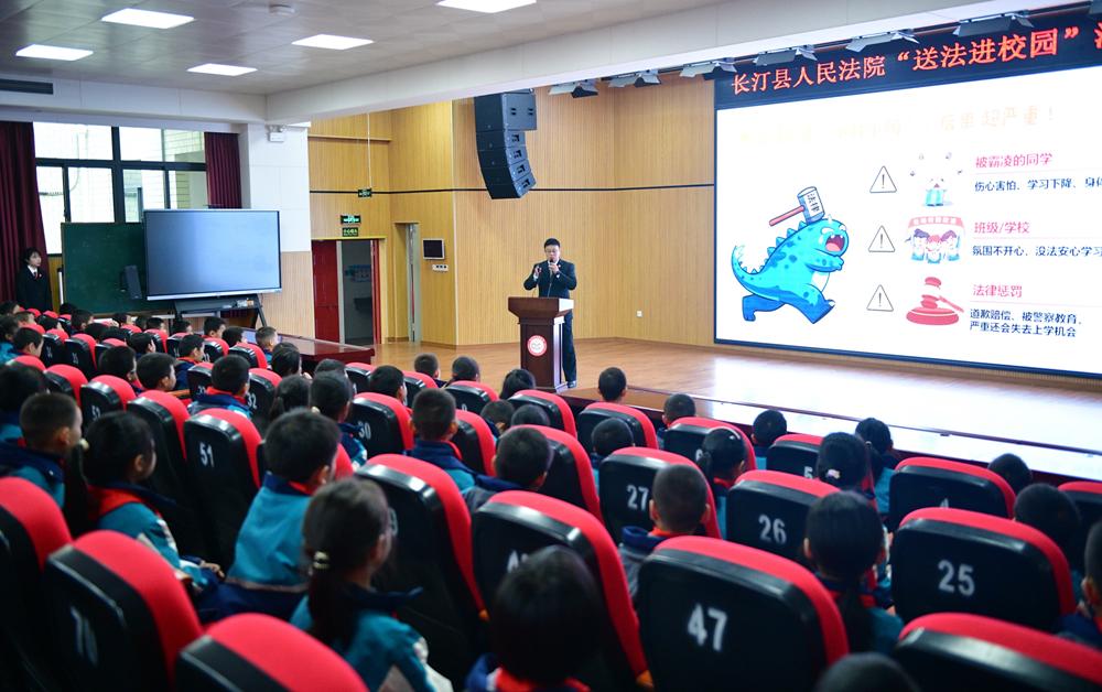 11月27日,長汀法院組織干警走進中區小學,以“遠離欺凌 文明出行”為主題開展普法宣傳活動,為師生送上一堂兼具專業性、實用性與趣味性的法治安全教育課。 |